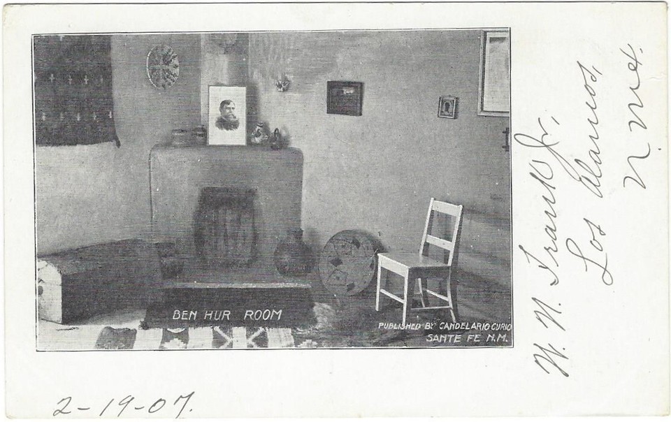 This vintage RPPC unposted black white postcard features the Palace of the Governor Lew Wallace Ben-Hur room in 1910s Santa Fe, New Mexico. This postcard is a must-have for collectors and
