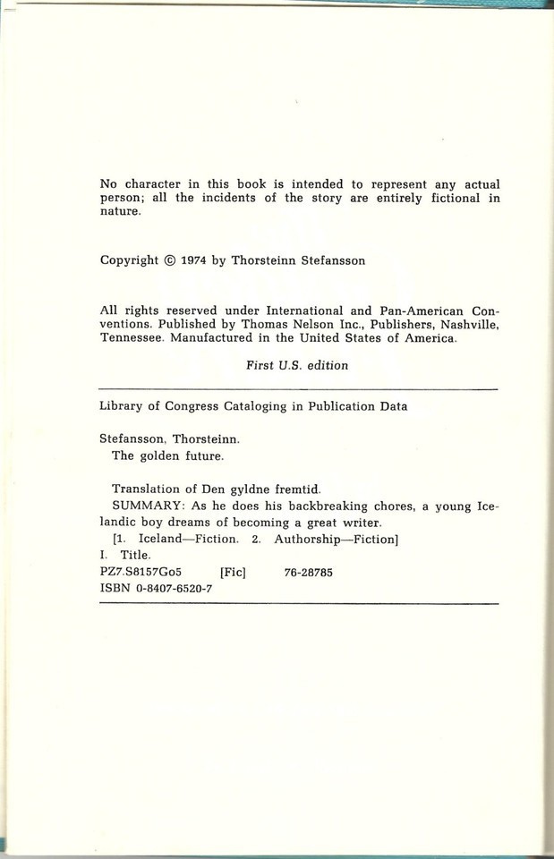 The Golden Future by Thorsteinn Stefansson (Hardcover, 1974)