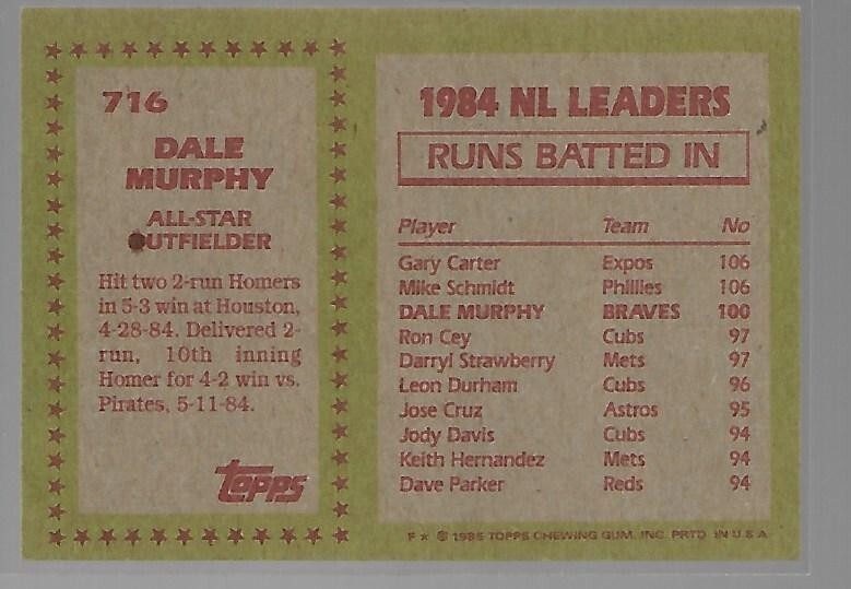 1985 Topps All Star, Dale Murphy, Atlanta Braves, #716