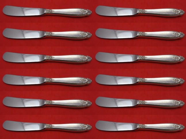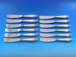 Set of 12 sterling silver hollow handle Individual Butter Spreaders with stainless paddle blades 5 7/8" in the pattern Prelude by International. They are not monogrammed and are in excellent condition, beautifully professionally polished.