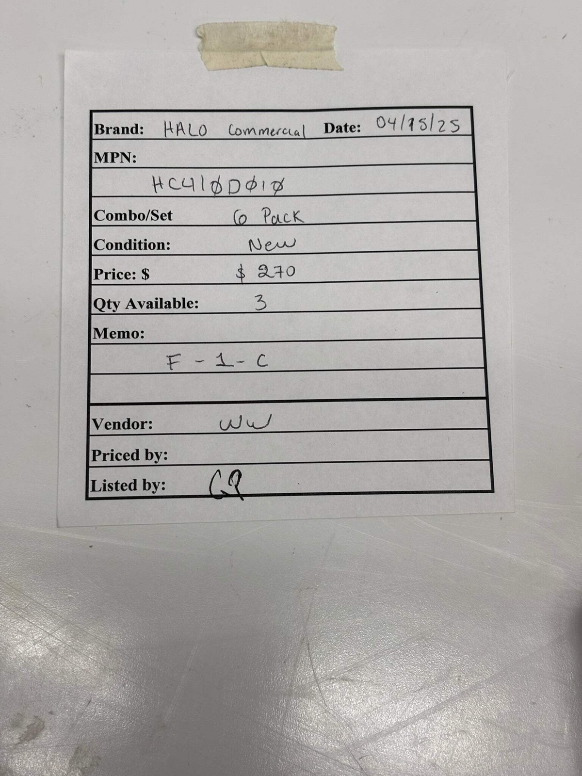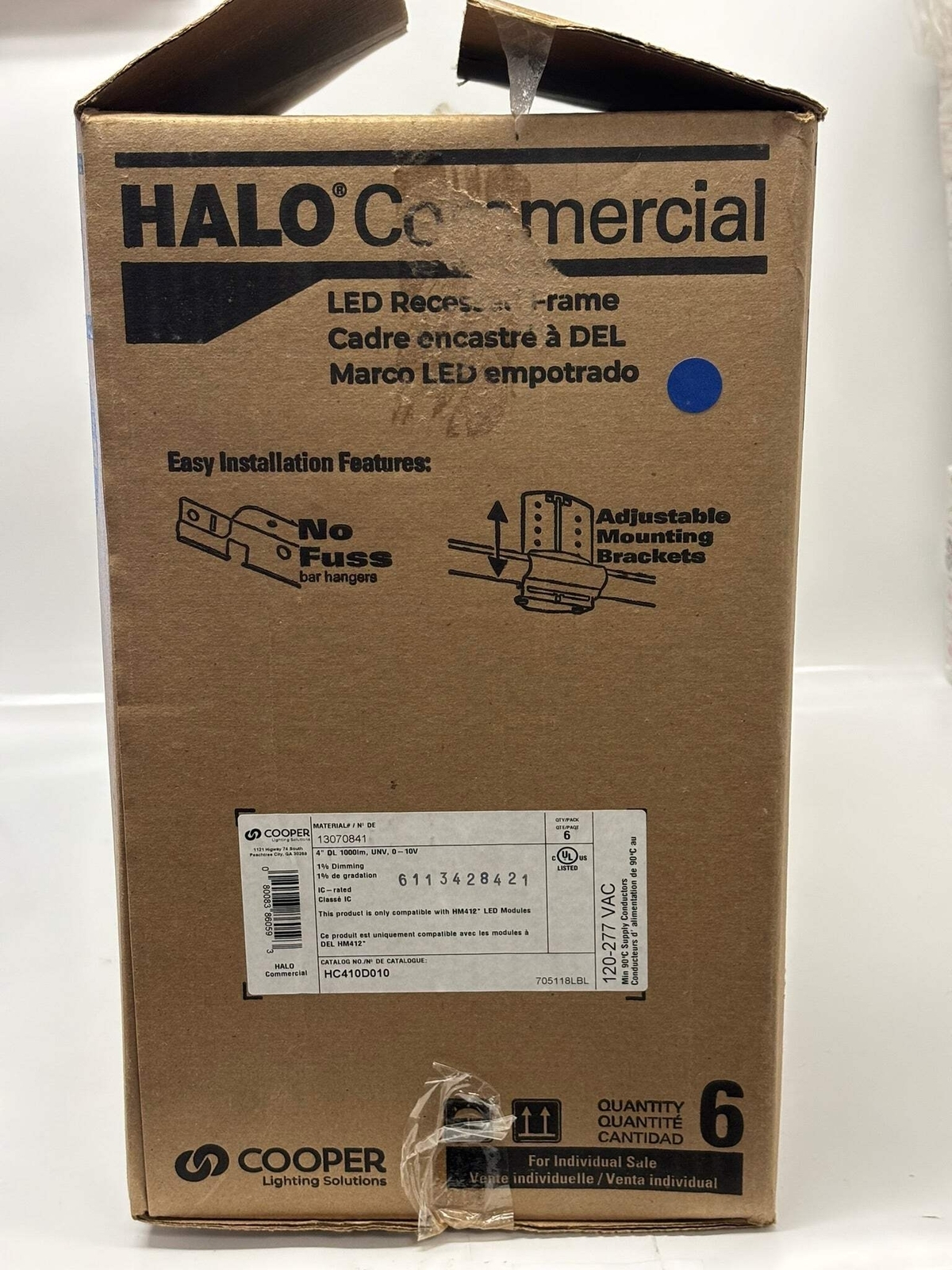 6-Pack Cooper Lighting HC410D010 Halo Commercial LED Recessed Frame Pack of 6. New, Good Condition. This downlight series offers lumen packages of 1000 to 4000 lumens and CCT options ranging from 2700K to 4000K, with 80 or 90 CRI for optimal color rendering. Precision-formed reflectors provide narrow, medium, and wide beam distributions, along with a wall wash option featuring an exclusive rotatable linear spread lens. Available reflector finishes include Specular, Semi-Specular, White, Black, and White Baffle for design flexibility. The fixtures support universal voltage (120V?277V) and 0-10V dimming down to 1% for seamless integration into commercial lighting systems. Listed By: Gabe (The Help Resale Team) ?Never squat with yer spurs on? - Unknown (A positive moment brought to you by Help Resale) About Us Welcome to Help Resale, your go-to consignment shop where value meets quality. At Help Resale, we're dedicated to providing you with an exceptional shopping experience, whether you're looking to find the best deals or consign your gently used items. Need to buy a product, but don't see it in our store? Please feel free to reach out to us and we will help you find it! Help Resale 7200 Fair Oaks Blvd Suite 120 Carmichael CA 95608 Business Hours: Monday-Friday: 9:00 am to 5:00 pm (PST) All product and company names are trademarks TM or registered trademarks of their respective holders. Use of them does not imply any affiliation with or endorsement by them.