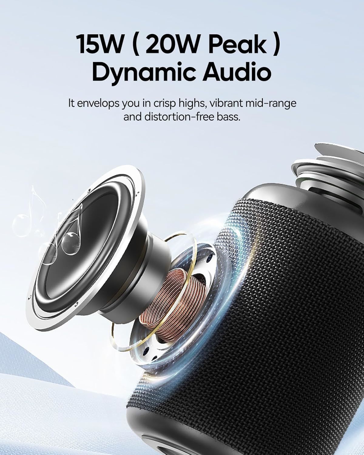 ?Immersive Sound?: Experience stunning 15W?20W peak) sound in a compact design. With zero distortion audio, this Bluetooth speaker delivers loud highs, crisp midrange, and full bass for an immersive listening experience. With up to 15 hours of playtime on a single charge, enjoy your favorite tunes all day and night without interruption ?Portable Design?: Compact and lightweight at 4.5 inches high and 3.07 inches in diameter, this speaker is perfect for on-the-go use. It features a TF card slot (supports WAV / FLAC / APE / MP3 formats), a 3.5mm AUX input port, Type-C fast charging, and a lanyard for convenient carrying ?Dynamic Beat-Synced Light Show?: Enjoy an exciting light show that dances to the rhythm of your music. With vibrant LED lights that sync with the beat, this speaker adds an extra dimension to your listening experience ?360 Stereo Pairing?: Enjoy true wireless stereo sound by pairing two speakers together. With 360 coverage, you can enjoy loud 30W music in any setting, whether it's at home, parties, the beach, park, or elsewhere ?Advanced Bluetooth 5.3?: Equipped with the latest Bluetooth 5.3 chip, this speaker ensures fast pairing and a stable connection.