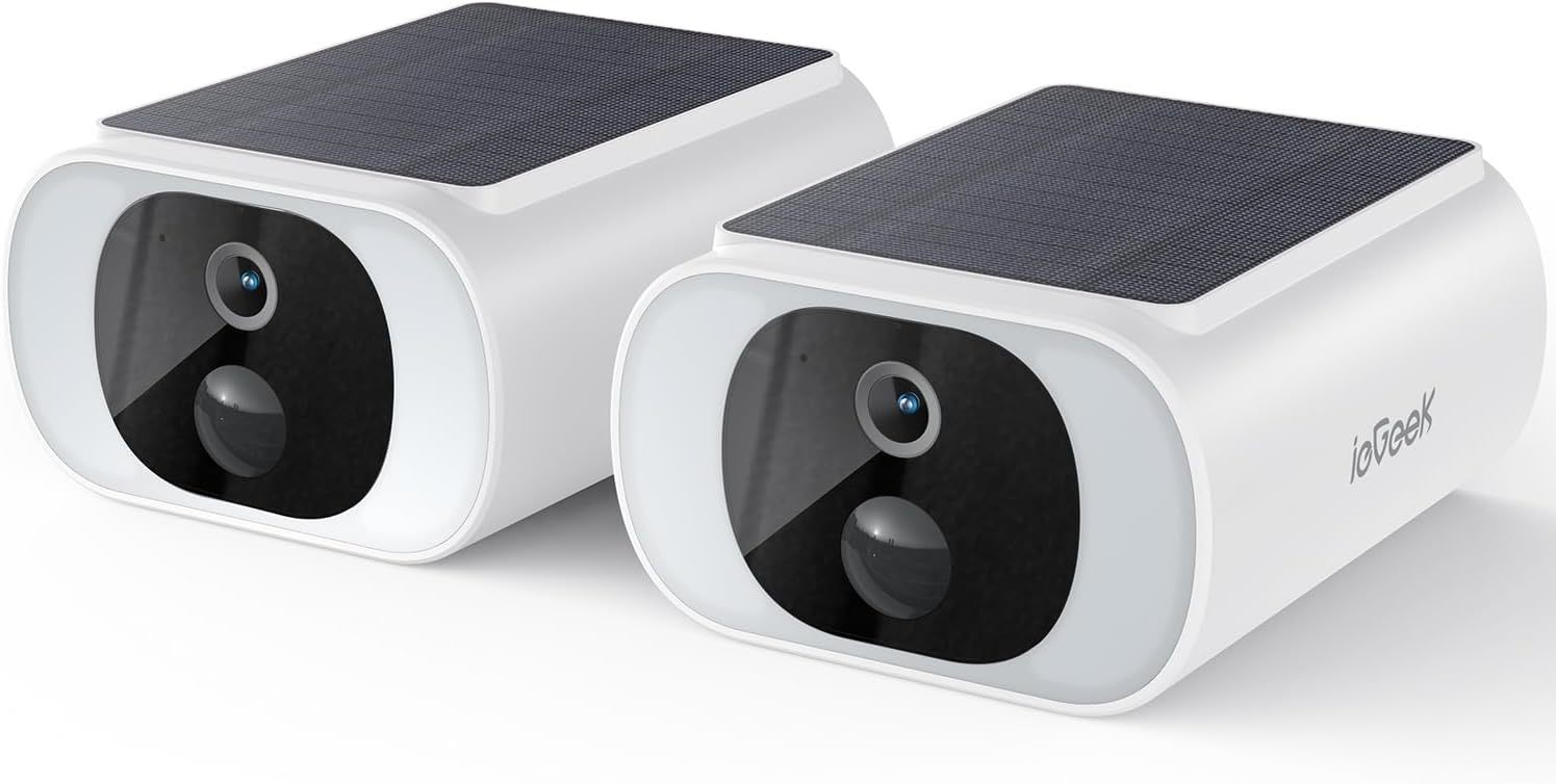 ieGeek Solar Camera Outdoor Wireless, 2K Outside Cameras for White 2 Pack