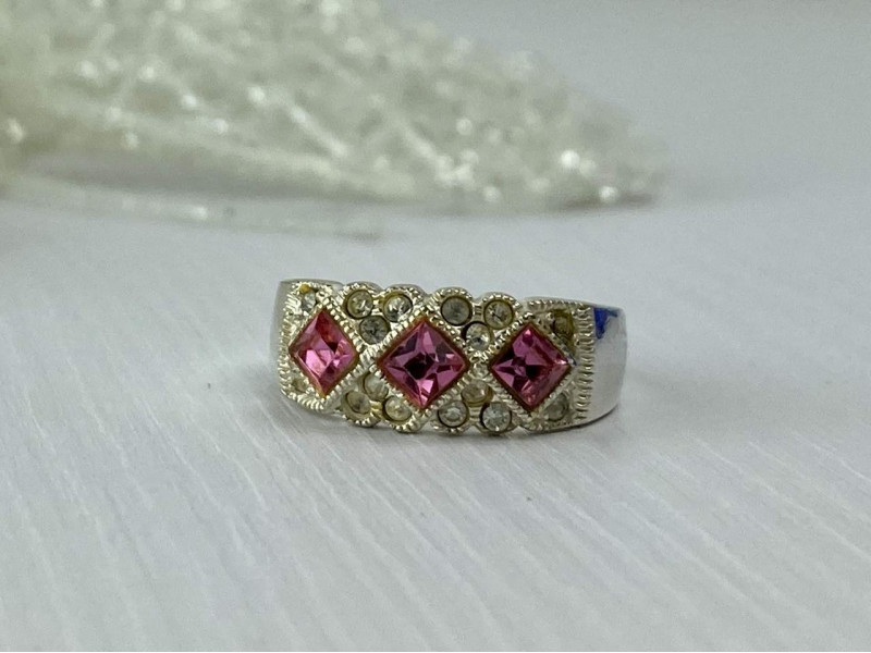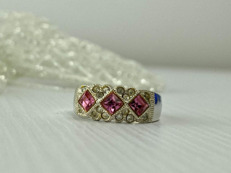 925 Sterling Silver Pink & White Cz Ring and similar items