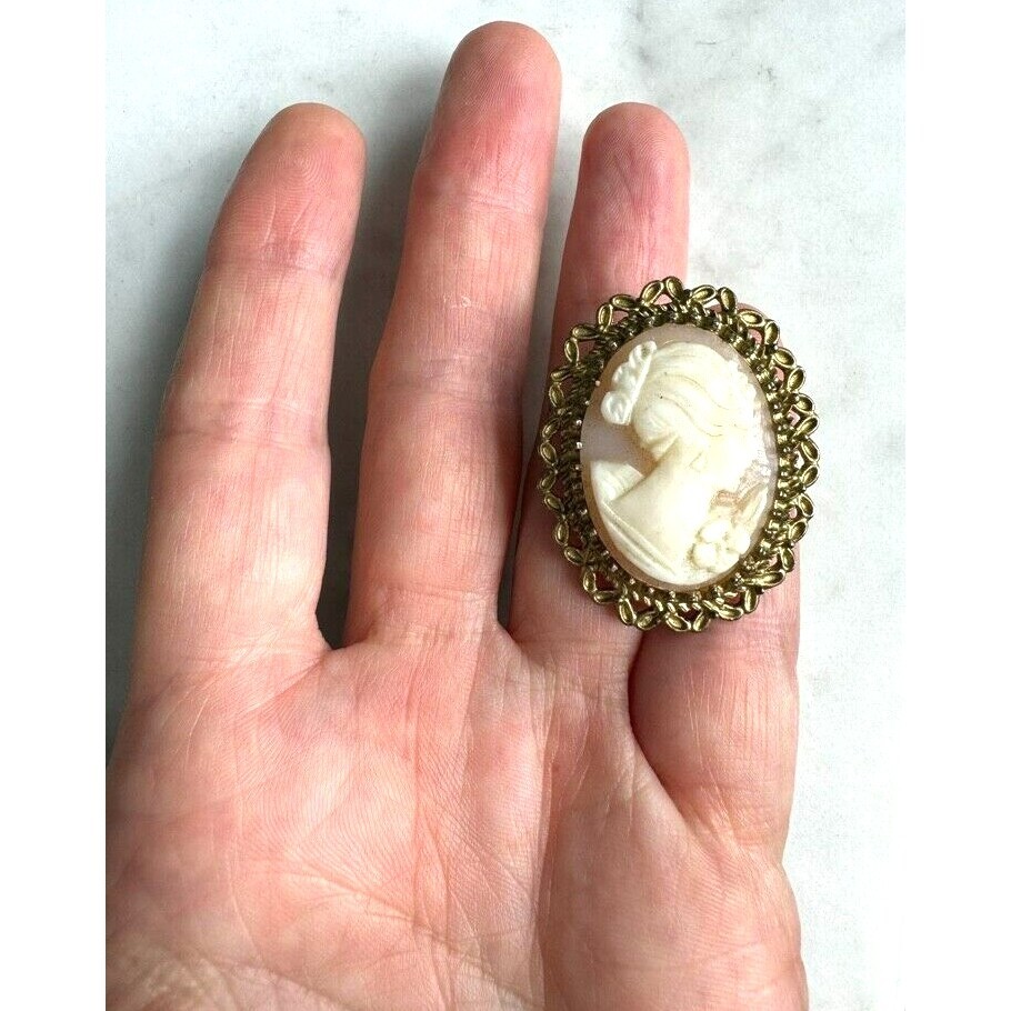 925 STERLING SILVER VERMEIL CARVED SHELL CAMEO BROOCH SKY