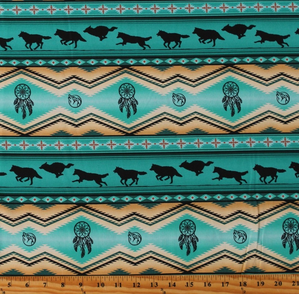 Cotton Southwestern Stripes Tucson Tribal Native American Aztec Turquoise Cotton Fabric Print by the Yard (556TURQUOISE)