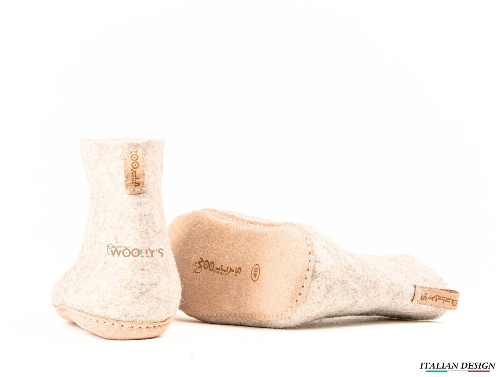 Natural Grey Indoor Boots with Leather Sole - Handmade Elegance and Comfort