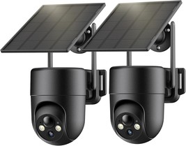 Security Cameras Wireless Outdoor, 2K Color Night Vision, Solar Camera Outdoor Wireless for Home Security, 360Panoramic View, Weatherproof, 2.4GHz WiFi, 2pack