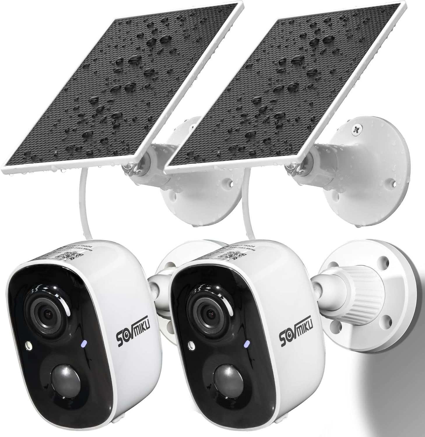 Sovmiku 2CG6 Solar Security Camera Wireless Outdoor,Battery Powered,Easy to Setup,PIR Motion Detection,Two Way Audio, Audible Flashlight Siren,2.4GHz Wi-Fi Color Night Vision, 180 Days Exchange Policy