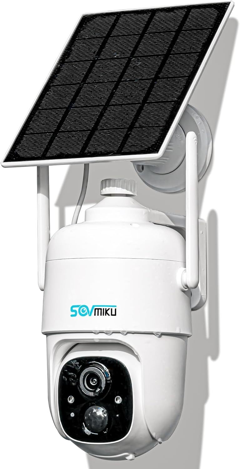 SOVMIKU 4CQ1 AI 2K Solar Security Camera Wireless Outdoor, Battery Powered, Two Way Audio, PIR Motion Detection, 360 View Pan/Tilt,Easy to Setup, Color Night Vision, Audible Flashlight Siren,SD Slot