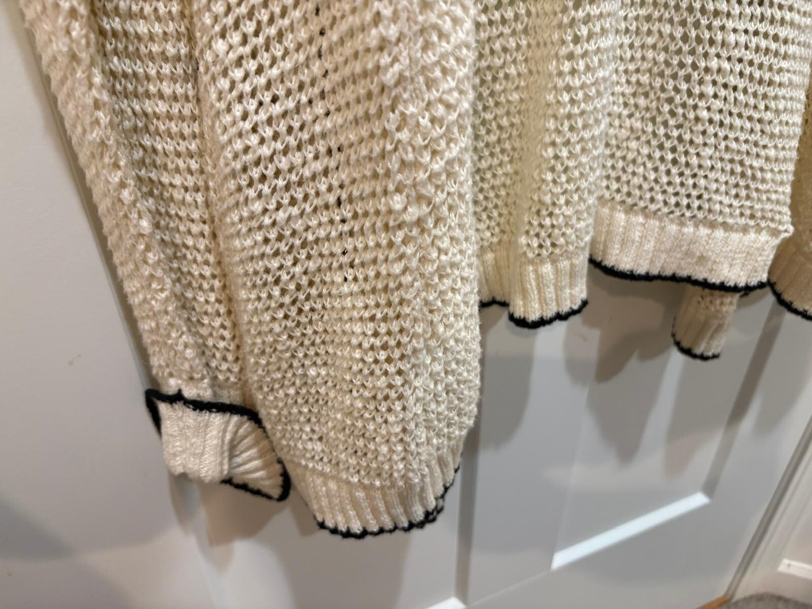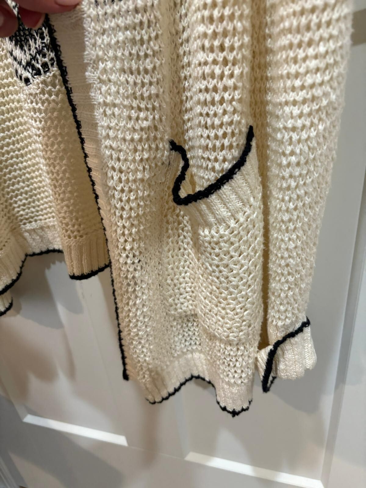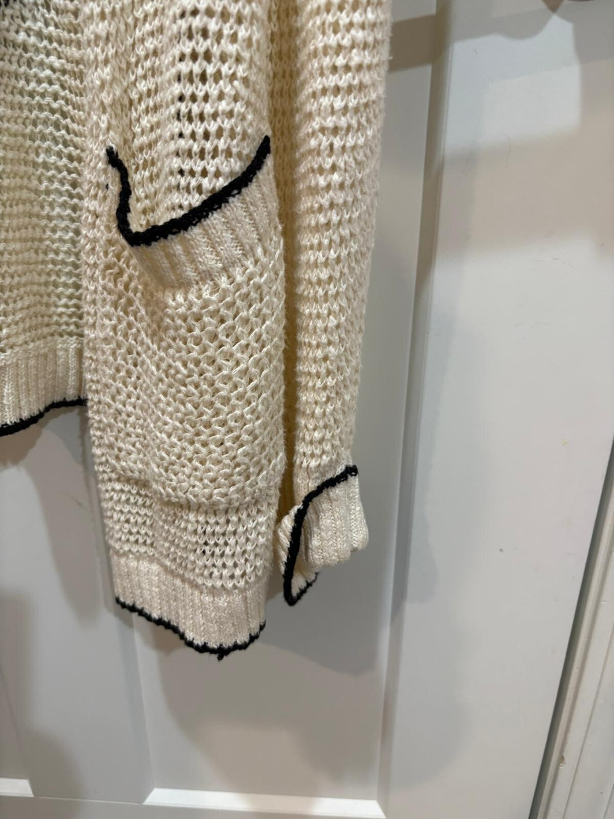 Maunces Open Knit Cardigan Sweater Women's Size 3 Cream Black Trim