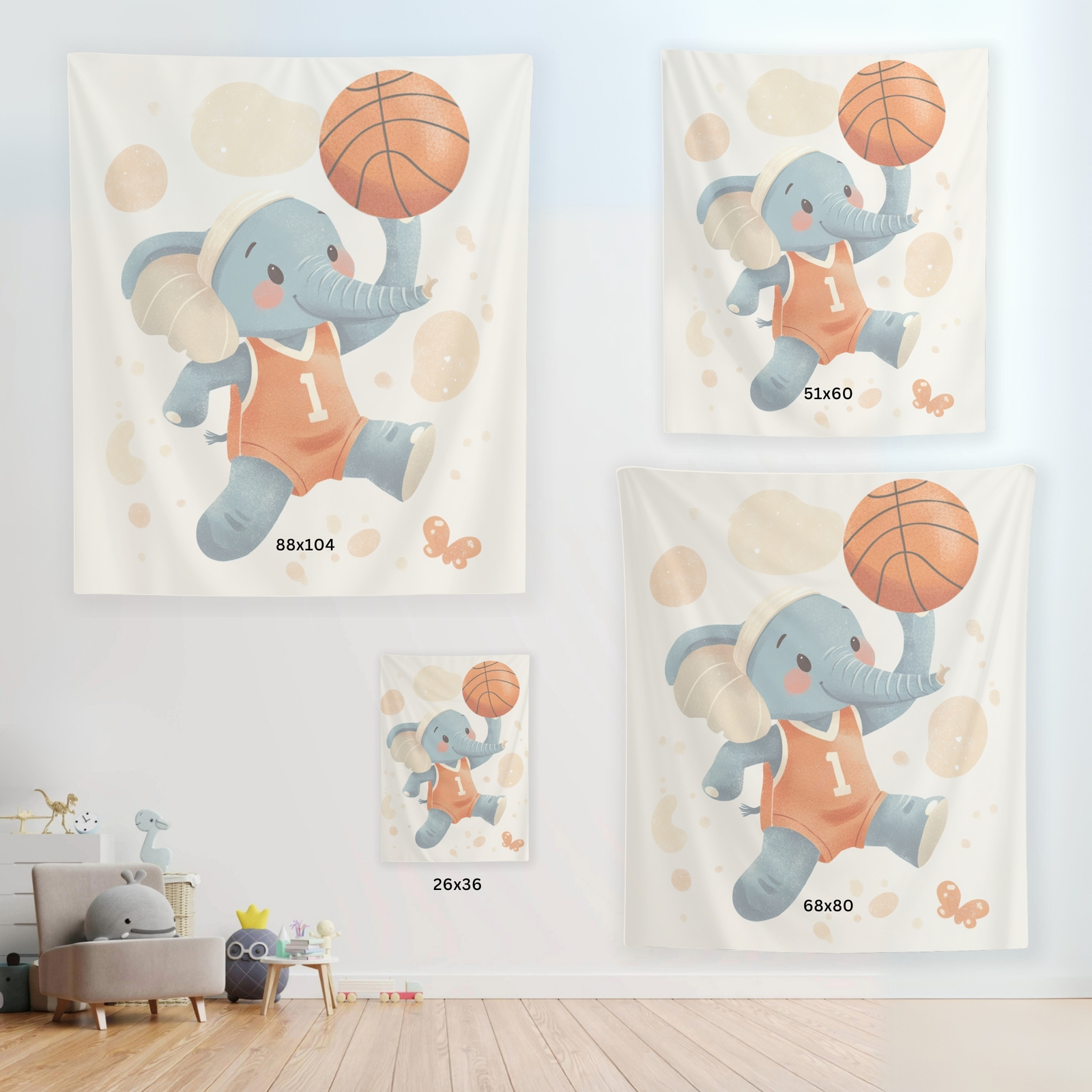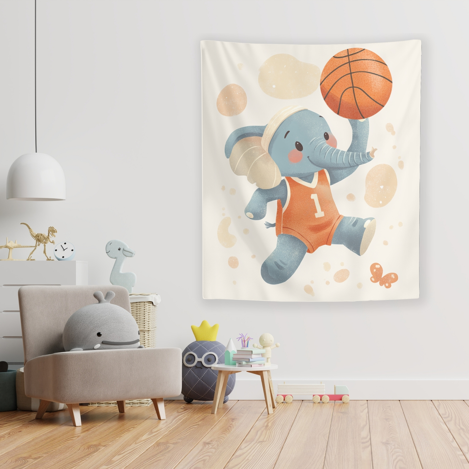 Eli the Elephant Dunker Wall Tapestry by Dancing Littles Jungle