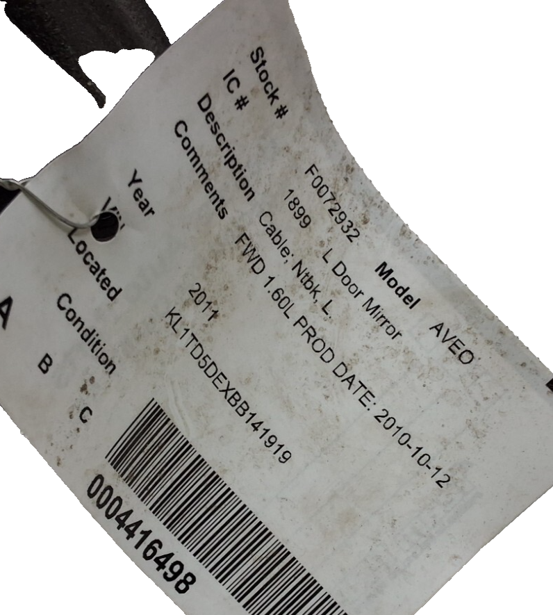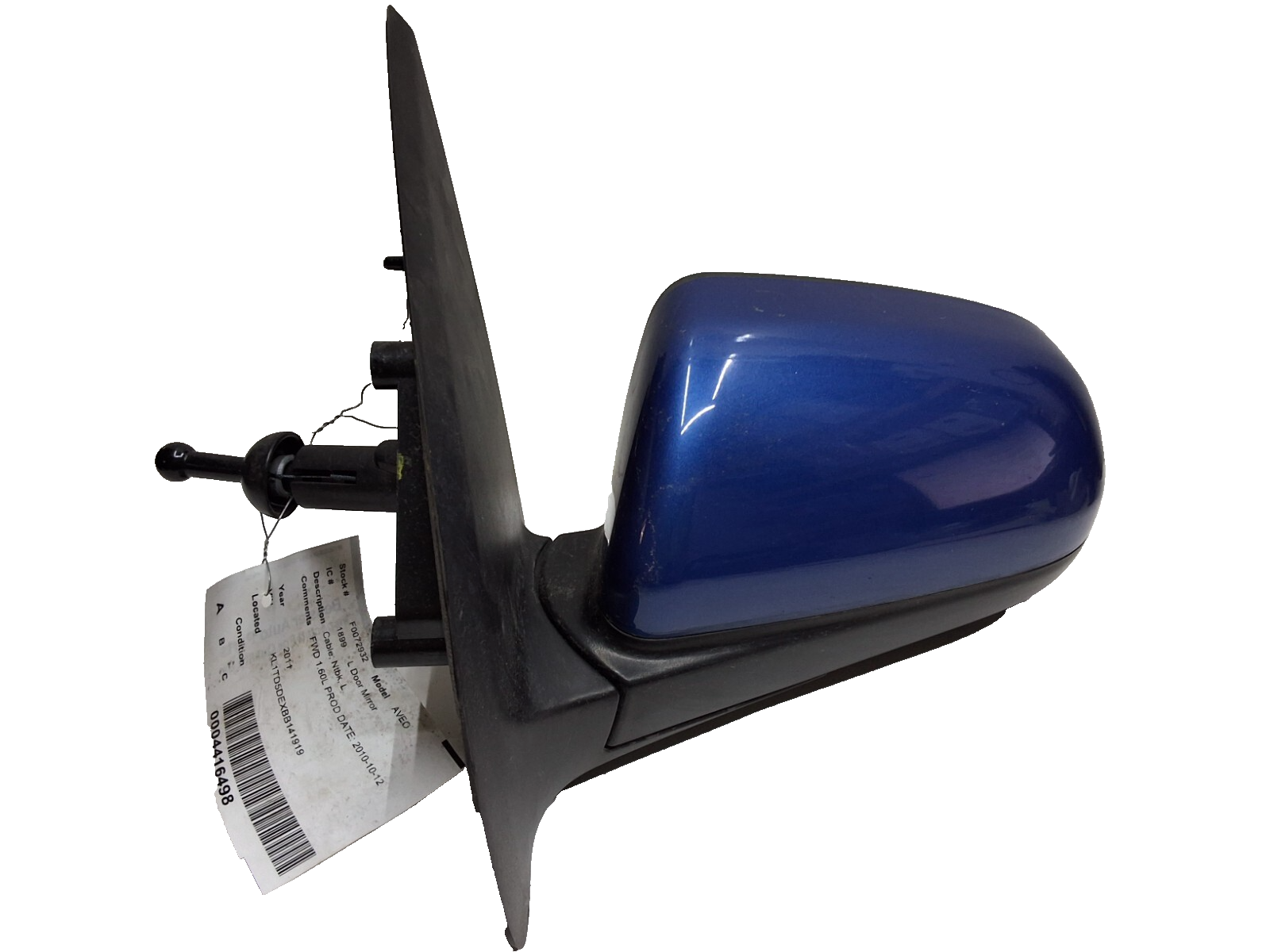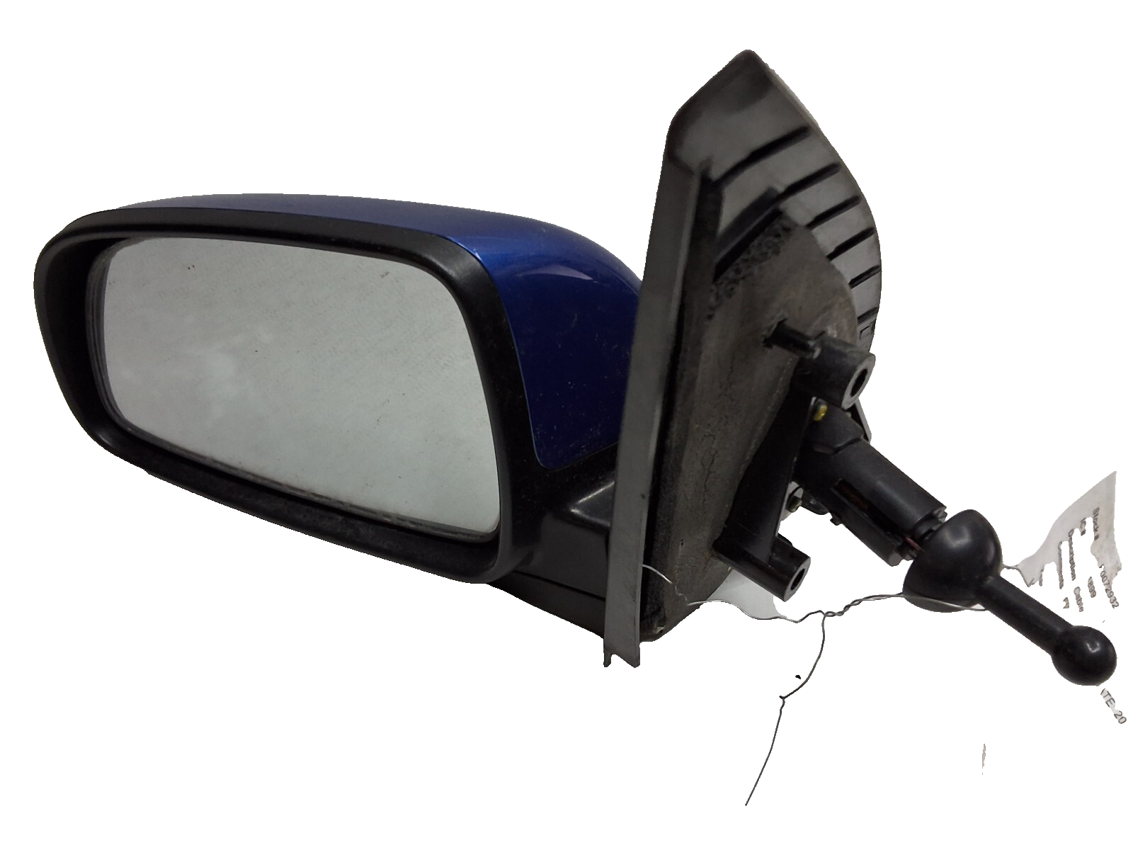 2007 through 2011 Chevrolet Aveo sedan left blue door mirror, manual cable control.