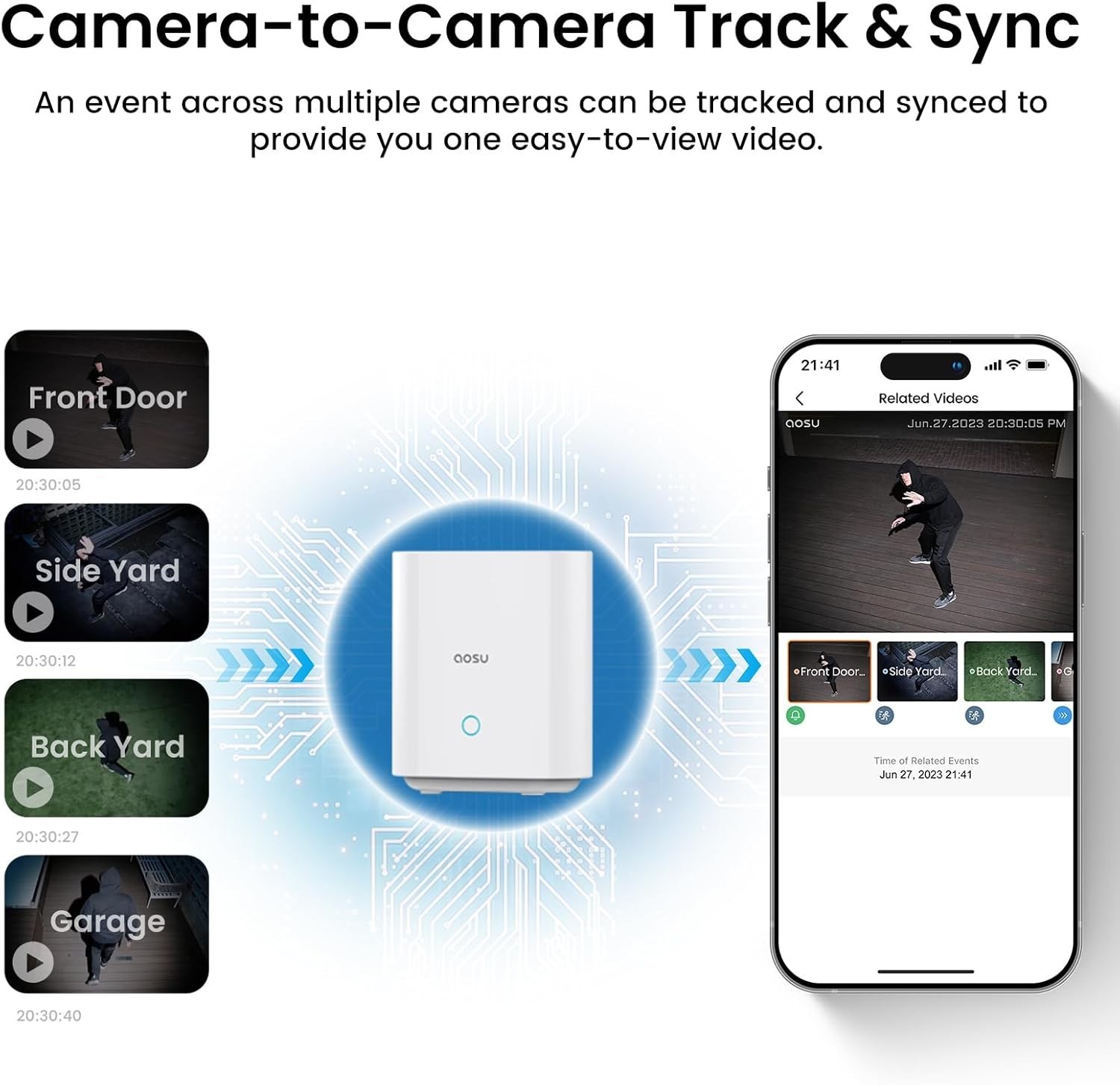 2-Minute DIY Installation by Anyone: All-in-one wireless outdoor security camera features a built-in solar panel, maximum simplifying the Installation steps. No wiring or professional technical required?just drill 4 holes and screw it in. No Monthly Fees Reliable Connectivity: The homebase comes with Local 32GB storage, providing free playbacks, encrypted video data, and video downloads of up to 120 days. (Optional Cloud service available). Extended WIFI coverage providing a stable signal for live view with no delays. Supports dual-band 2.4G 5G WiFi. Camera to Camera Tracking All-At-Once Monitoring: Outside security camera system automatically track and sync events across multiple cameras, view up to 2 cameras simultaneously. Effortlessly check outdoor activity and detect intruders, ensuring your property is fully protected! Solar Powered Outdoor Camera for All-Day Surveillance: The outside security camera?s solar panel converts 95% of sunlight into energy, keeping the battery charged. Just 2 hours of sunlight daily for non-stop power, no dead batteries concerns. 2K FHD Video Color Night Vision: Experience 50% sharper clarity with 2K resolution than 1080p. The spotlight camera ensures vibrant color night vision, capturing critical details like license plates and potential threats, even in complete darkness. Multiple Alerts Integrated Smart Alarm: Receive instant notifications with a quick preview image for people coming, passing, or staying in the detection zone. 3 Alarm types: siren, spotlights, and app notification. Deter unwelcome visitors with warning lights and alarms at night to provide an extra layer of security. Note: Each homebase supports a maximum of 4 AOSU home security cameras.