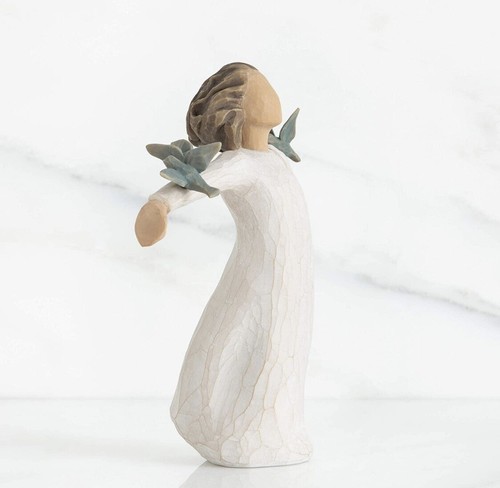 Willow Tree sculptural art forms beautifully express love, closeness, healing, courage, hope? all the emotions of a life well lived. Artist Susan Lordi hand carves the original of each figure from her studio in Kansas City Missouri. Pieces are cast from her original carvings, and individually painted by hand. Expression is revealed through gestures only? a tilt of the head, placement of the hands, a turn of the body. The simplicity of form and absence of facial features signify Willow Tree. It is Susan?s hope that these pieces be meaningful to both giver and receiver.