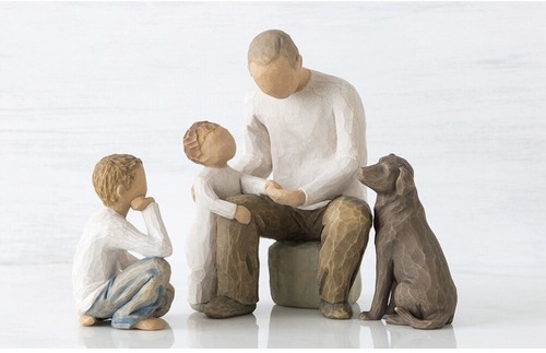 Willow Tree sculptural art forms beautifully express love, closeness, healing, courage, hope? all the emotions of a life well lived. Artist Susan Lordi hand carves the original of each figure from her studio in Kansas City Missouri. Pieces are cast from her original carvings, and individually painted by hand. Expression is revealed through gestures only? a tilt of the head, placement of the hands, a turn of the body. The simplicity of form and absence of facial features signify Willow Tree. It is Susan?s hope that these pieces be meaningful to both giver and receiver.