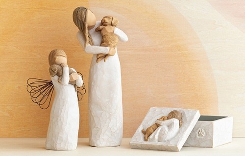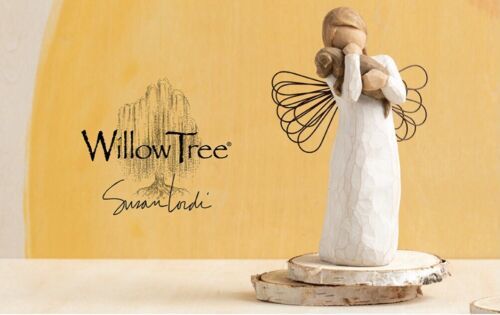 Willow Tree sculptural art forms beautifully express love, closeness, healing, courage, hope? all the emotions of a life well lived. Artist Susan Lordi hand carves the original of each figure from her studio in Kansas City Missouri. Pieces are cast from her original carvings, and individually painted by hand. Expression is revealed through gestures only? a tilt of the head, placement of the hands, a turn of the body. The simplicity of form and absence of facial features signify Willow Tree. It is Susan?s hope that these pieces be meaningful to both giver and receiver.
