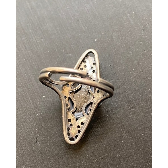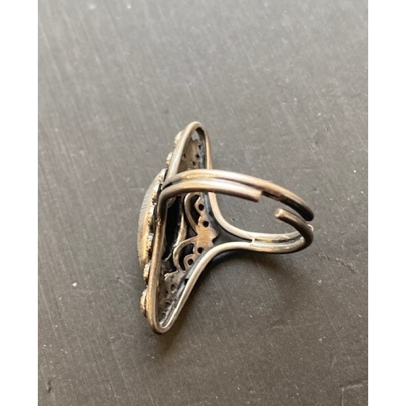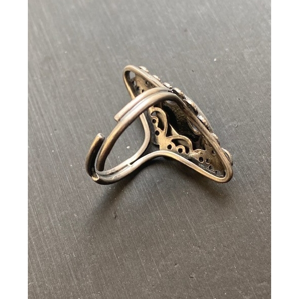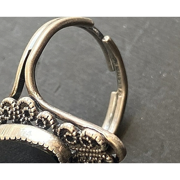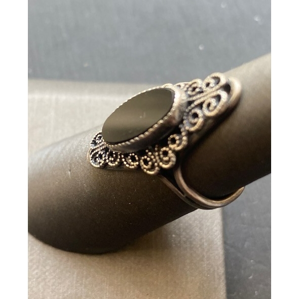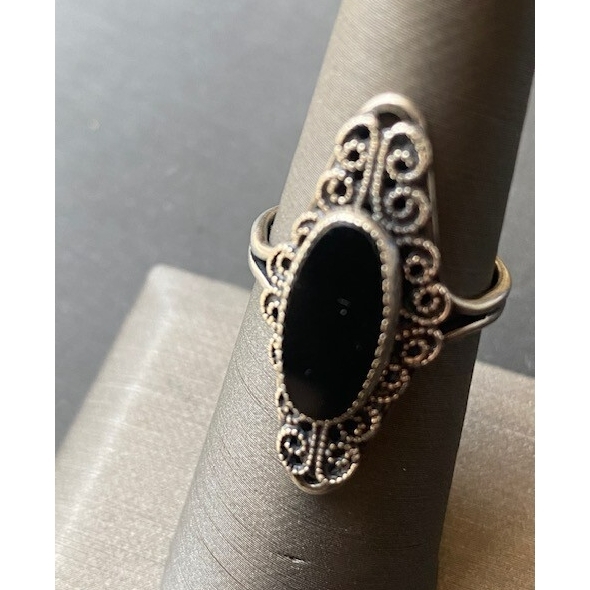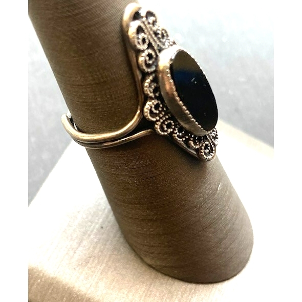 BEAU 925 STERLING SILVER AND ONYX SCROLL DESIGN RING, ADJUSTABLE SIZE SKY