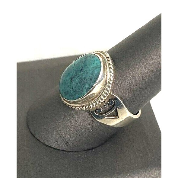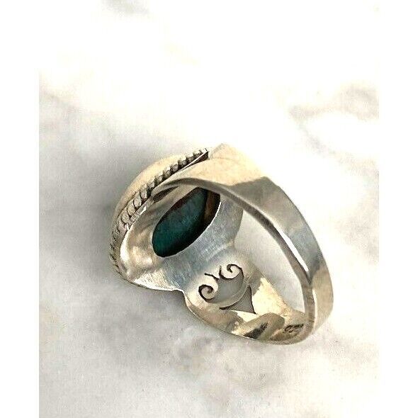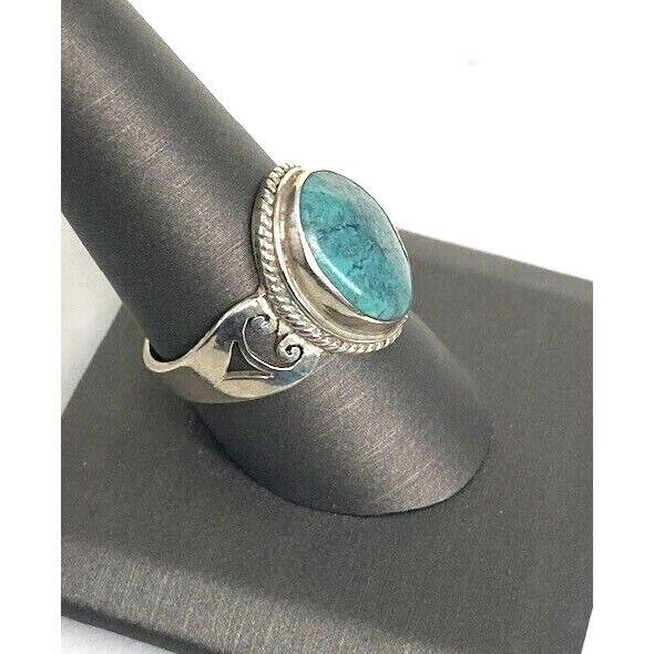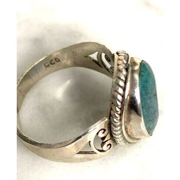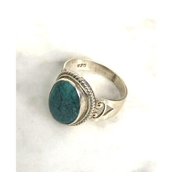 VINTAGE HANDMADE 925 STERLING SILVER AND TURQUOISE RING SIZE 9.5 SKY