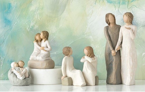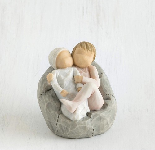 Willow Tree sculptural art forms beautifully express love, closeness, healing, courage, hope? all the emotions of a life well lived. Artist Susan Lordi hand carves the original of each figure from her studio in Kansas City Missouri. Pieces are cast from her original carvings, and individually painted by hand. Expression is revealed through gestures only? a tilt of the head, placement of the hands, a turn of the body. The simplicity of form and absence of facial features signify Willow Tree. It is Susan?s hope that these pieces be meaningful to both giver and receiver.