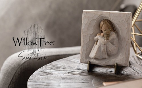 Willow Tree sculptural art forms beautifully express love, closeness, healing, courage, hope? all the emotions of a life well lived. Artist Susan Lordi hand carves the original of each figure from her studio in Kansas City Missouri. Pieces are cast from her original carvings, and individually painted by hand. Expression is revealed through gestures only? a tilt of the head, placement of the hands, a turn of the body. The simplicity of form and absence of facial features signify Willow Tree. It is Susan?s hope that these pieces be meaningful to both giver and receiver.