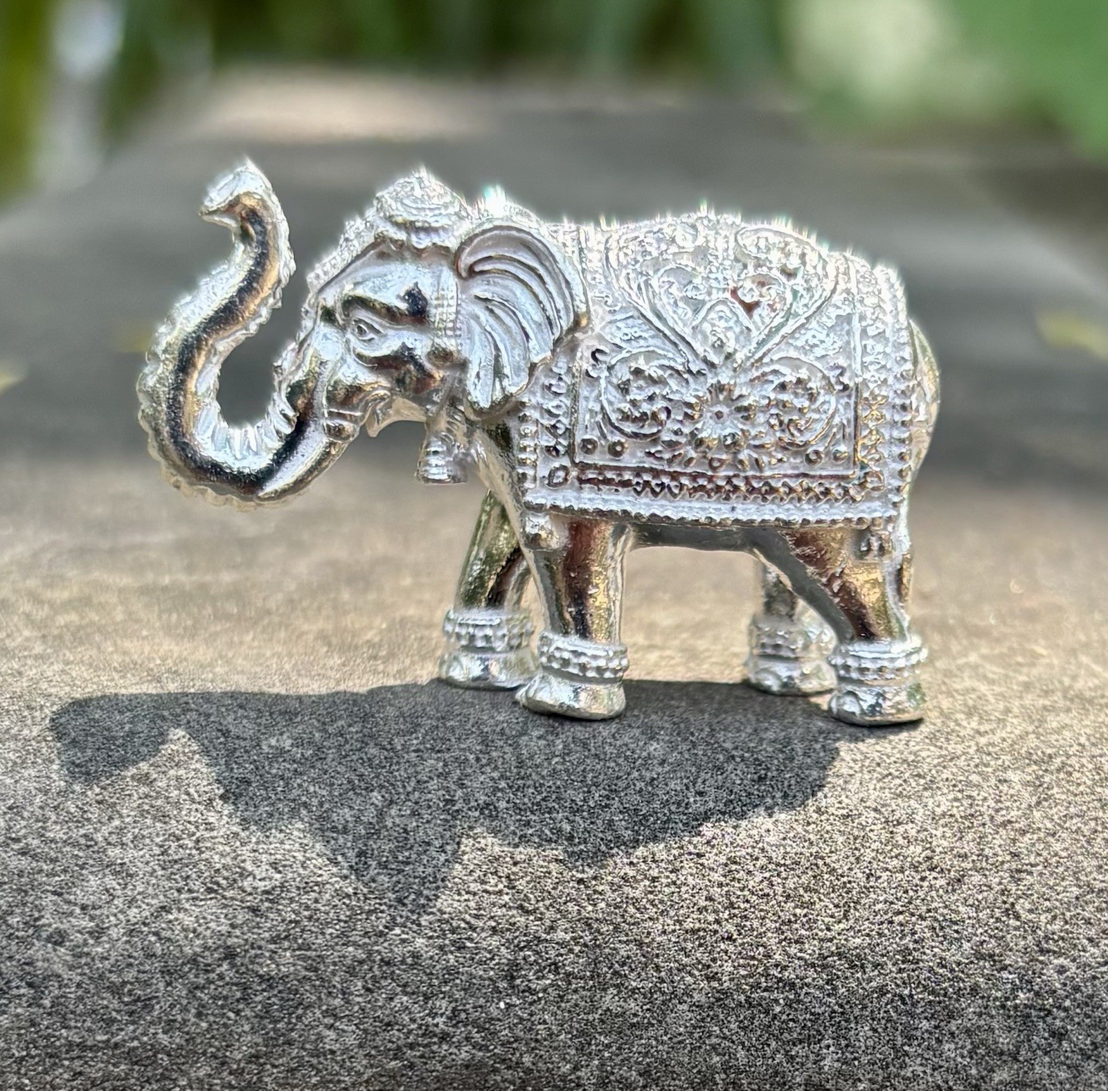 Statue idole hathi éléphant massif hindou en argent 999 46 gm, bonne chance