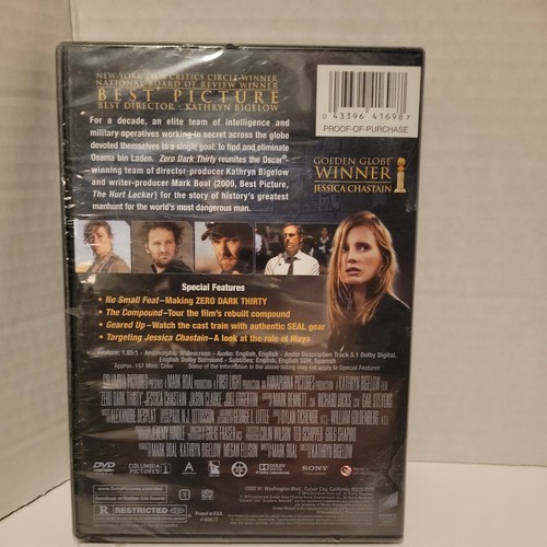 The product is a sealed DVD of the action-adventure movie "Zero Dark Thirty" directed by Kathryn Bigelow and starring Jessica Chastain. This R-rated film, released in 2012 by Sony Pictures, has a running time of 157 minutes and falls under the sub-genre of biography. The DVD format and region code are specified as 1, indicating it is compatible with DVD players in North America. With a stellar cast and acclaimed director, this movie is sure to provide an intense and thrilling viewing experience for fans of the genre.
