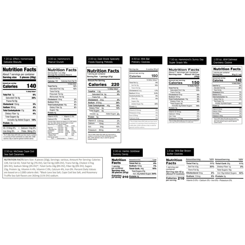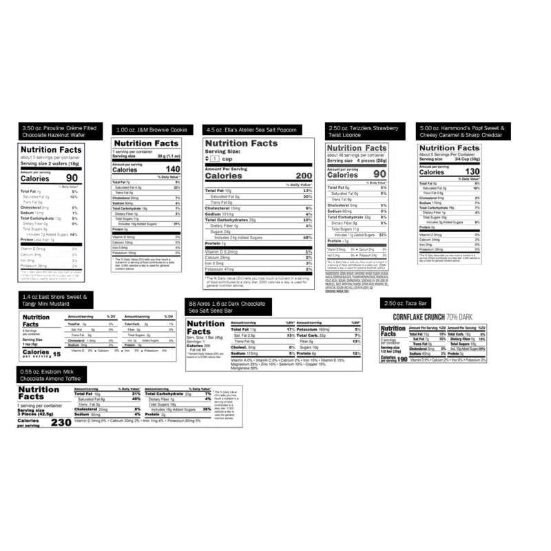 Enjoy Effie?s Oat Cakes, Ella?s Atelier Popcorn, Hammond?s snack mix, Milk Bar cookies, Taza Chocolate bar, McCrea?s caramels and so much more.