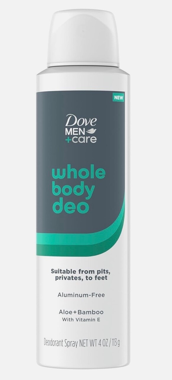Dove Men+Care Whole Body Deo Spray, Aloe + Bamboo, 4 Oz, Aluminum |