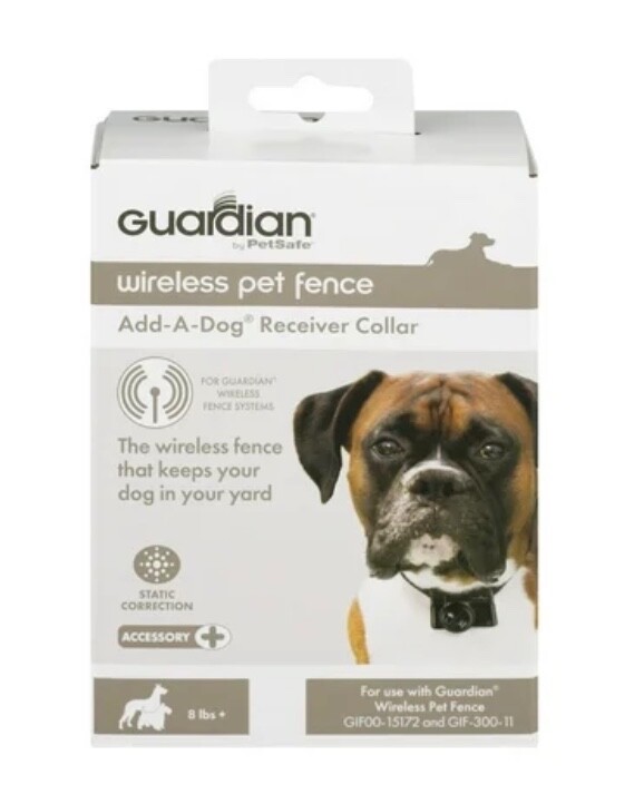 Guardian by PetSafe Wireless Pet Fence Add-A-Dog Receiver Collar, For Dogs 8 Lbs +, Use with Guardian Wireless Pet Fence System GIF00-15172 and GIF-300-11, Static Correction