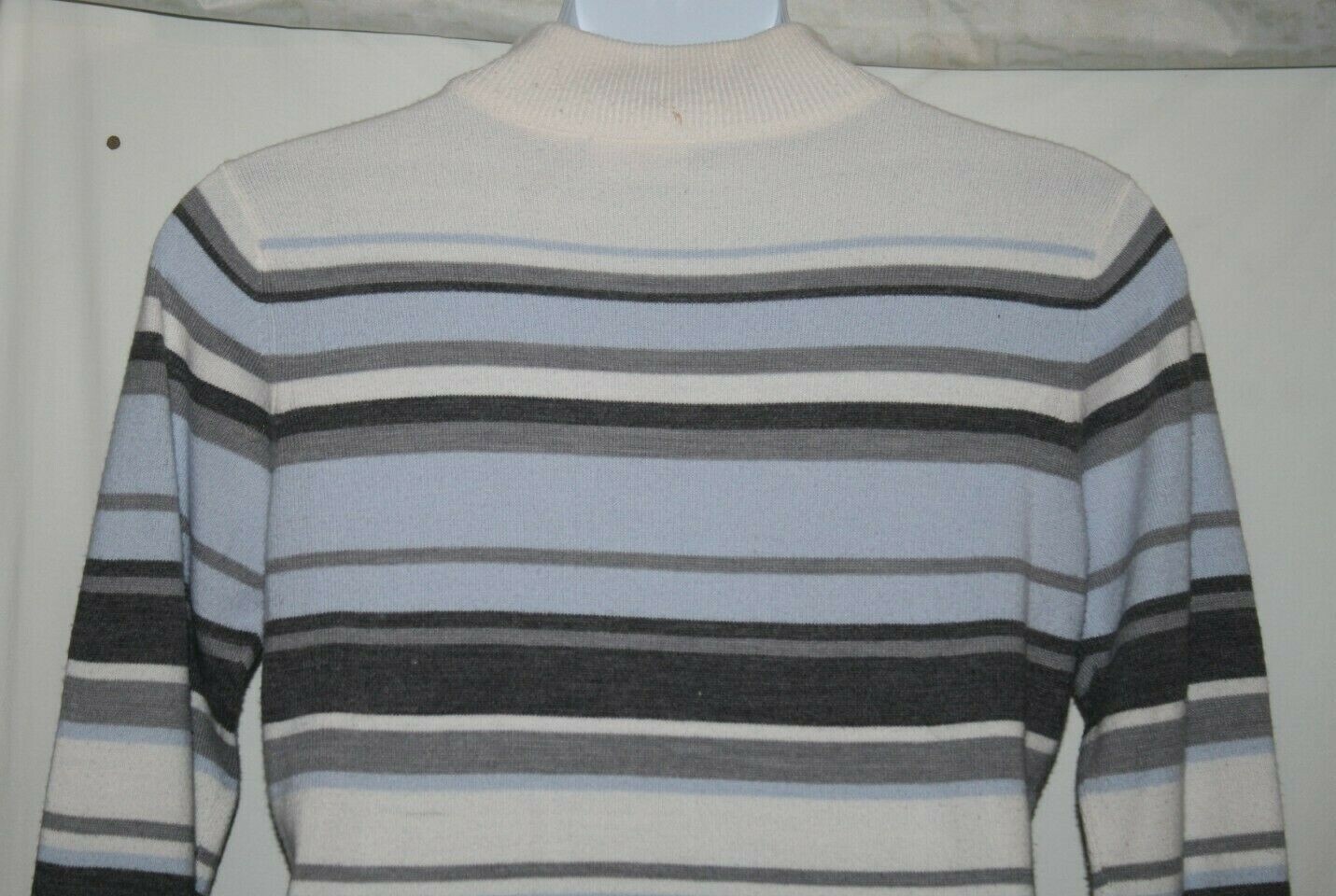 Croft & Barrow Misses MEDIUM Mock Turtleneck Sweater Blue Gray Striped Thin Soft
