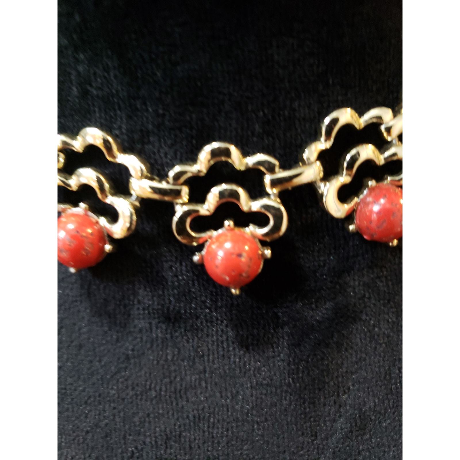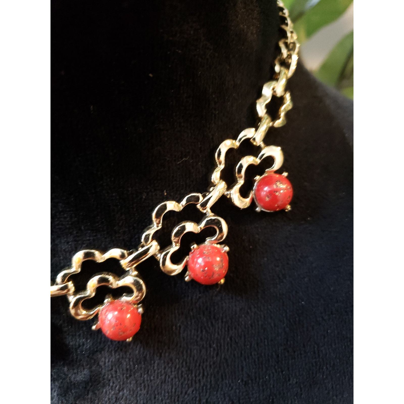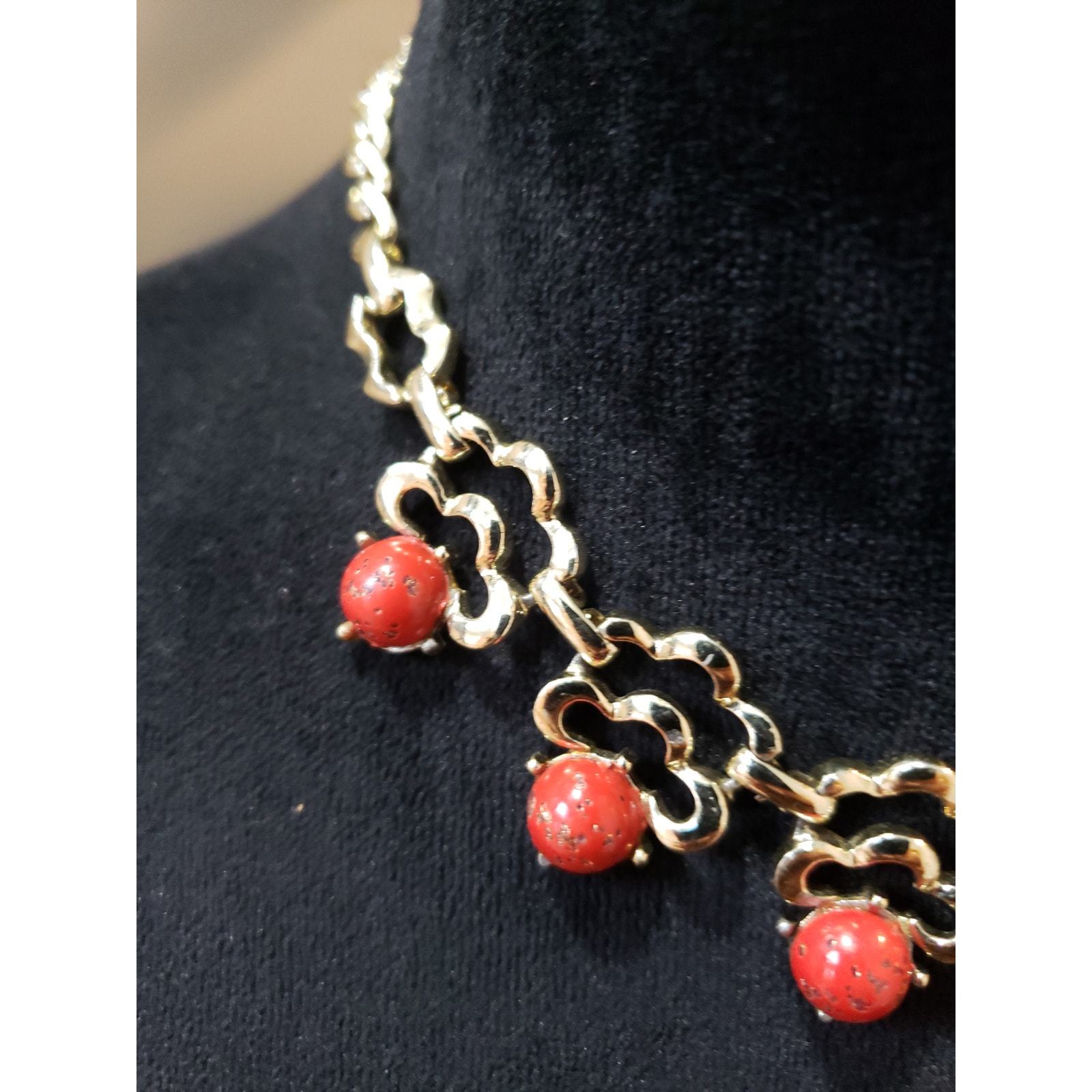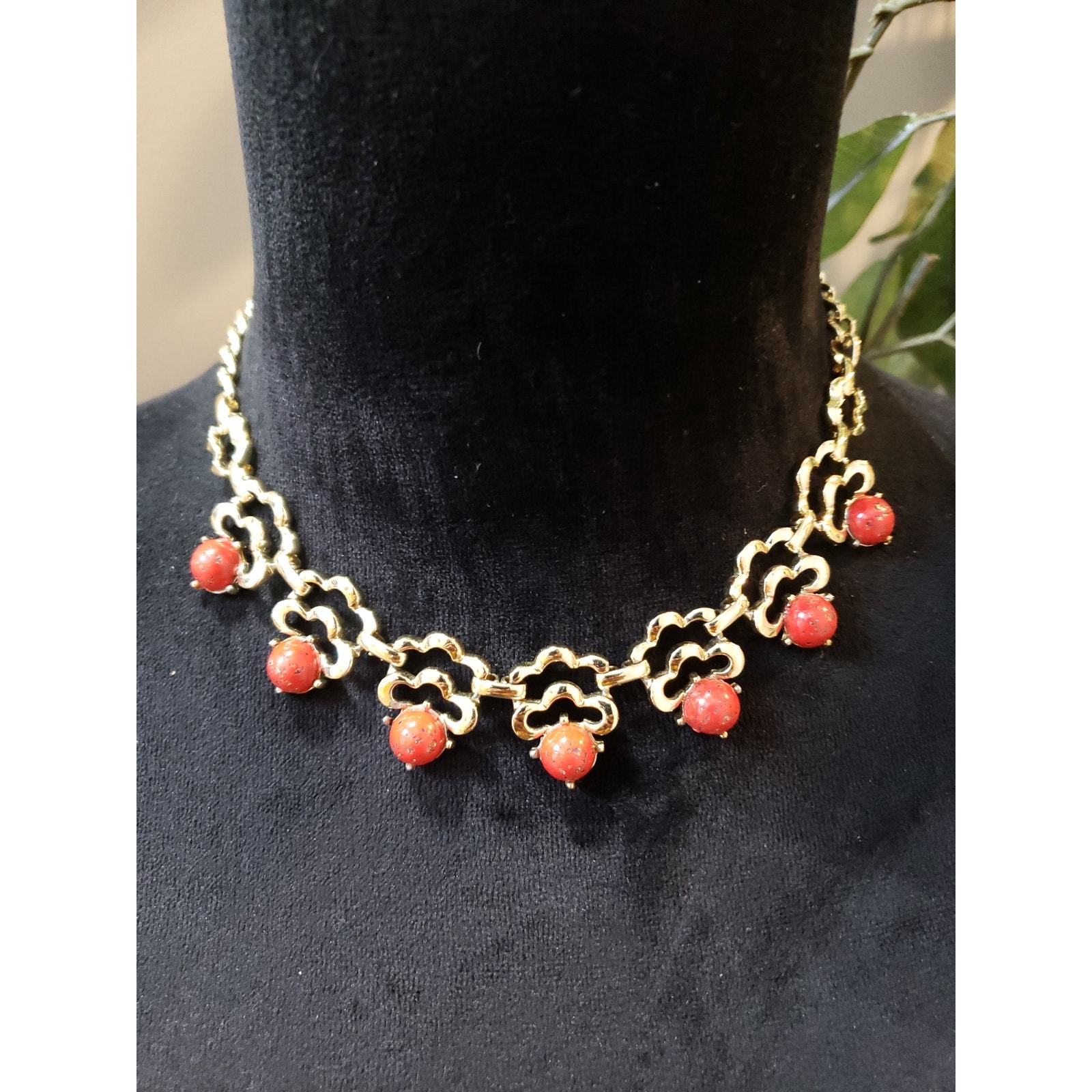 Women Gold Red Beaded Choker Necklace Vintage Floral Statement Chain Jewelry