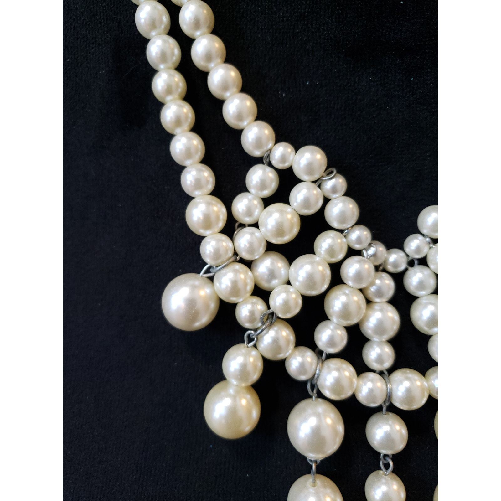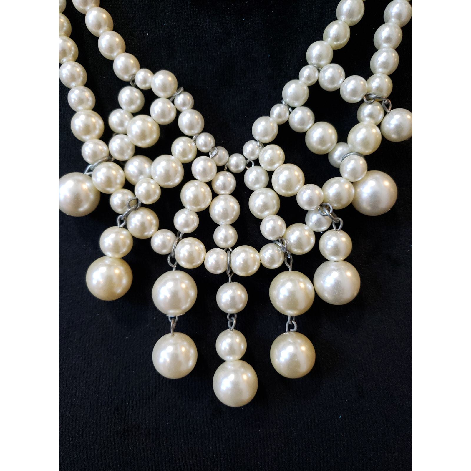 Chunky Crystal Cream Multi-Pearl Strand Draped Necklace Statement Jewelry Set![]() ![]() ![]() ![]()