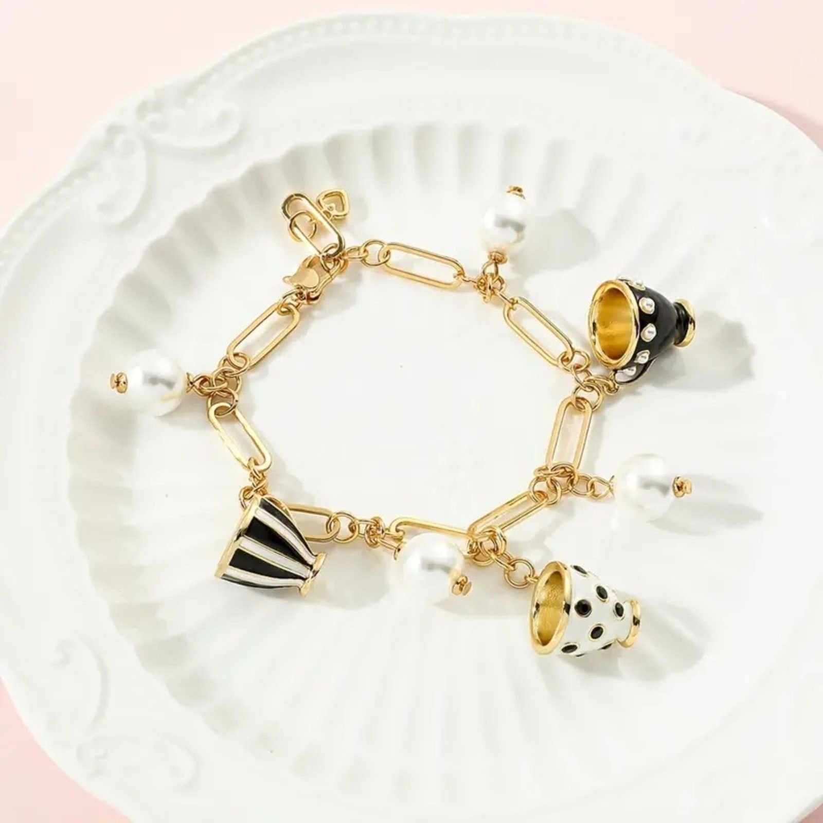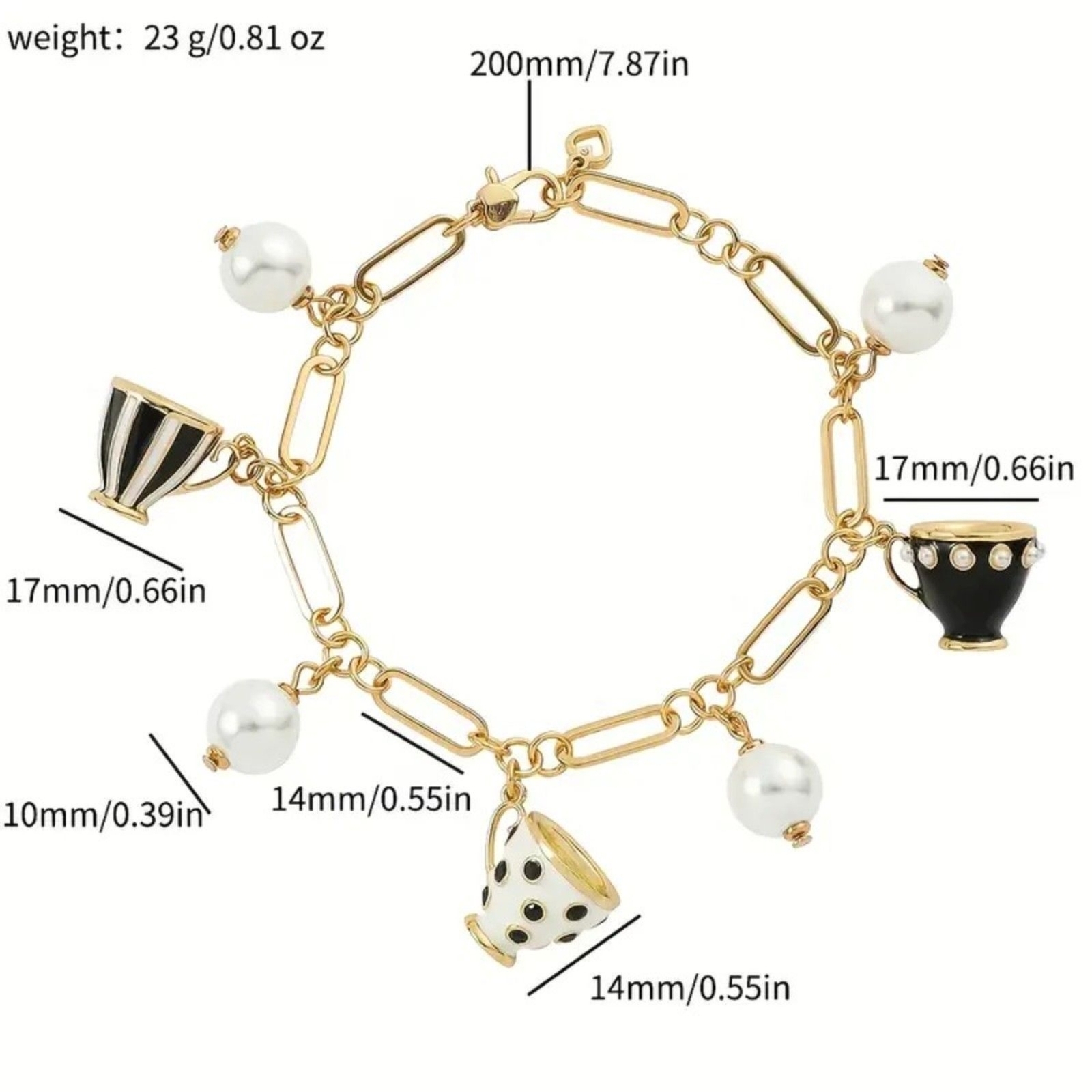 Each teacup features a unique design?polka dots, stripes, and gold detailing?adding character and whimsy to your outfit. Whether you?re heading to a tea party, brunch, or just want to spark conversation, this bracelet makes a delightful statement.