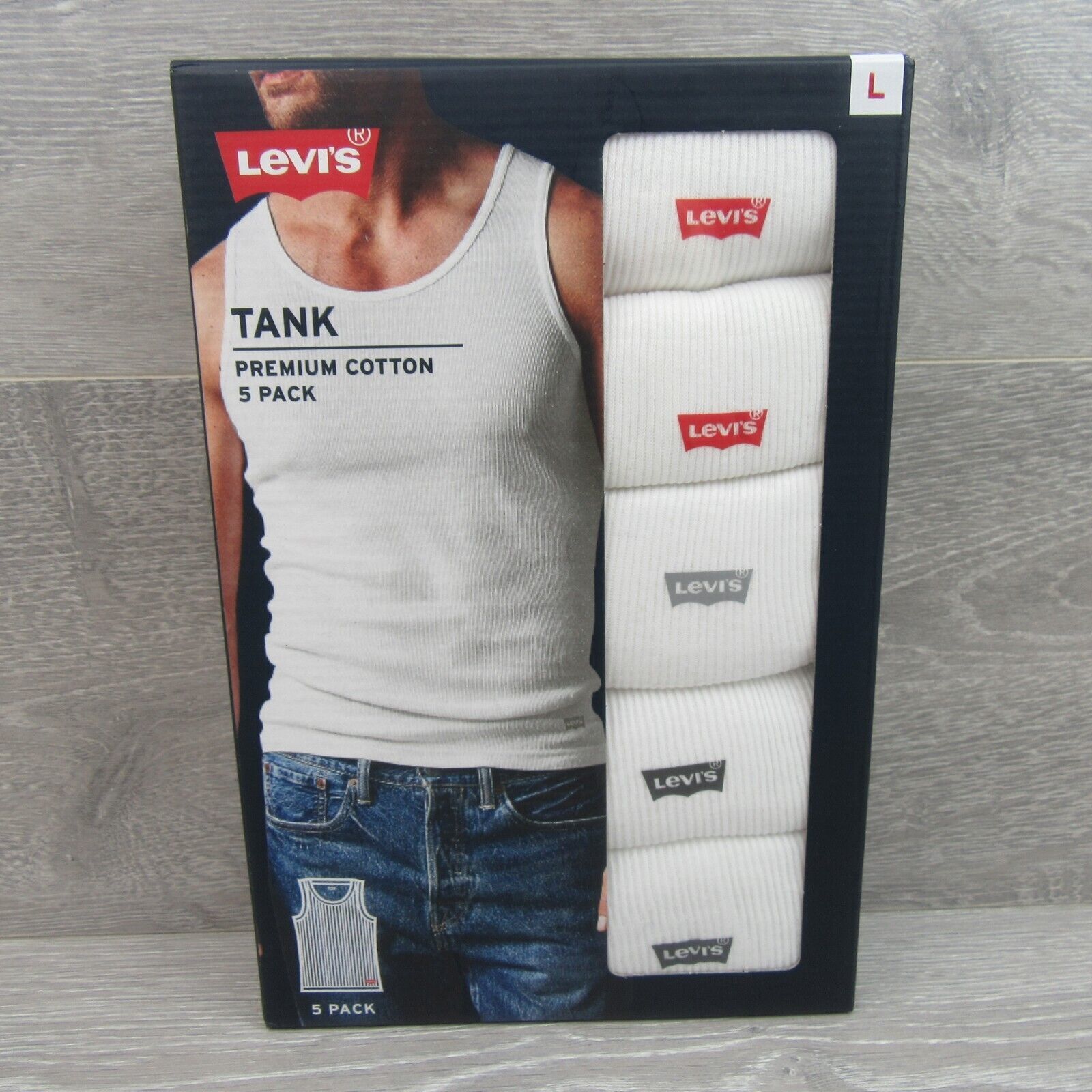Levi’s Men's Premium Cotton Tank Top Size Large 5 Pack White NEW 6HMTK501