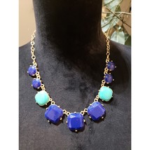 Womens Gold Tone Faceted Aqua Blue and Purple Squared Away Collar Necklace.