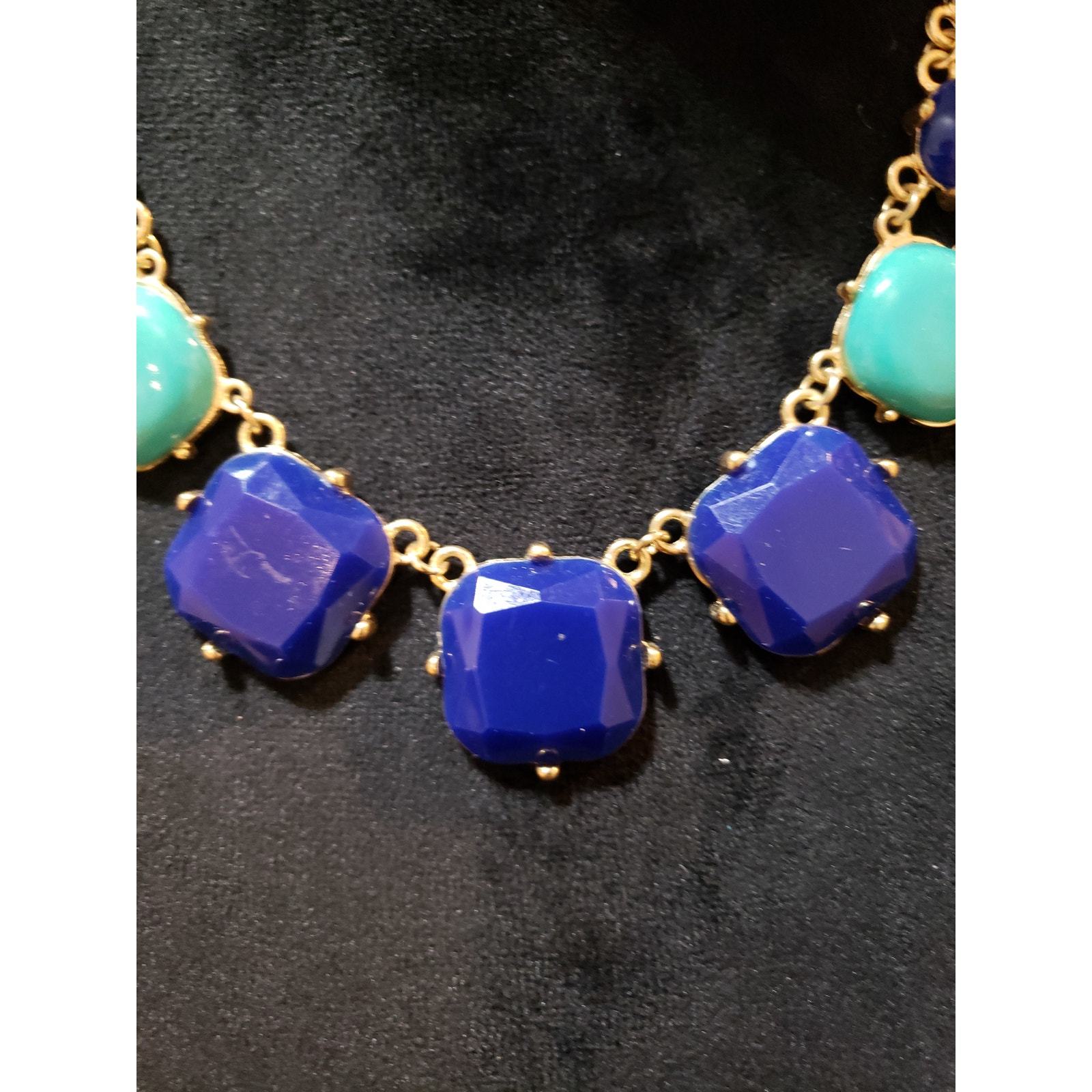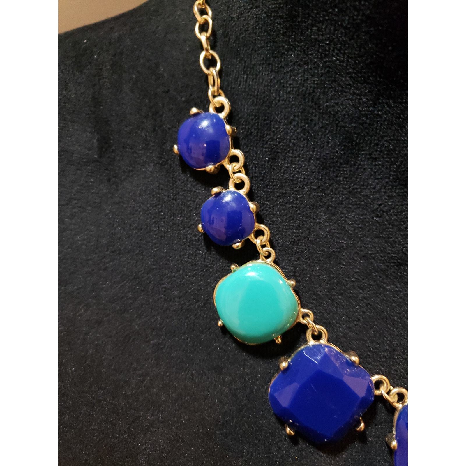 Womens Gold Tone Faceted Aqua Blue and Purple Squared Away Collar Necklace.
