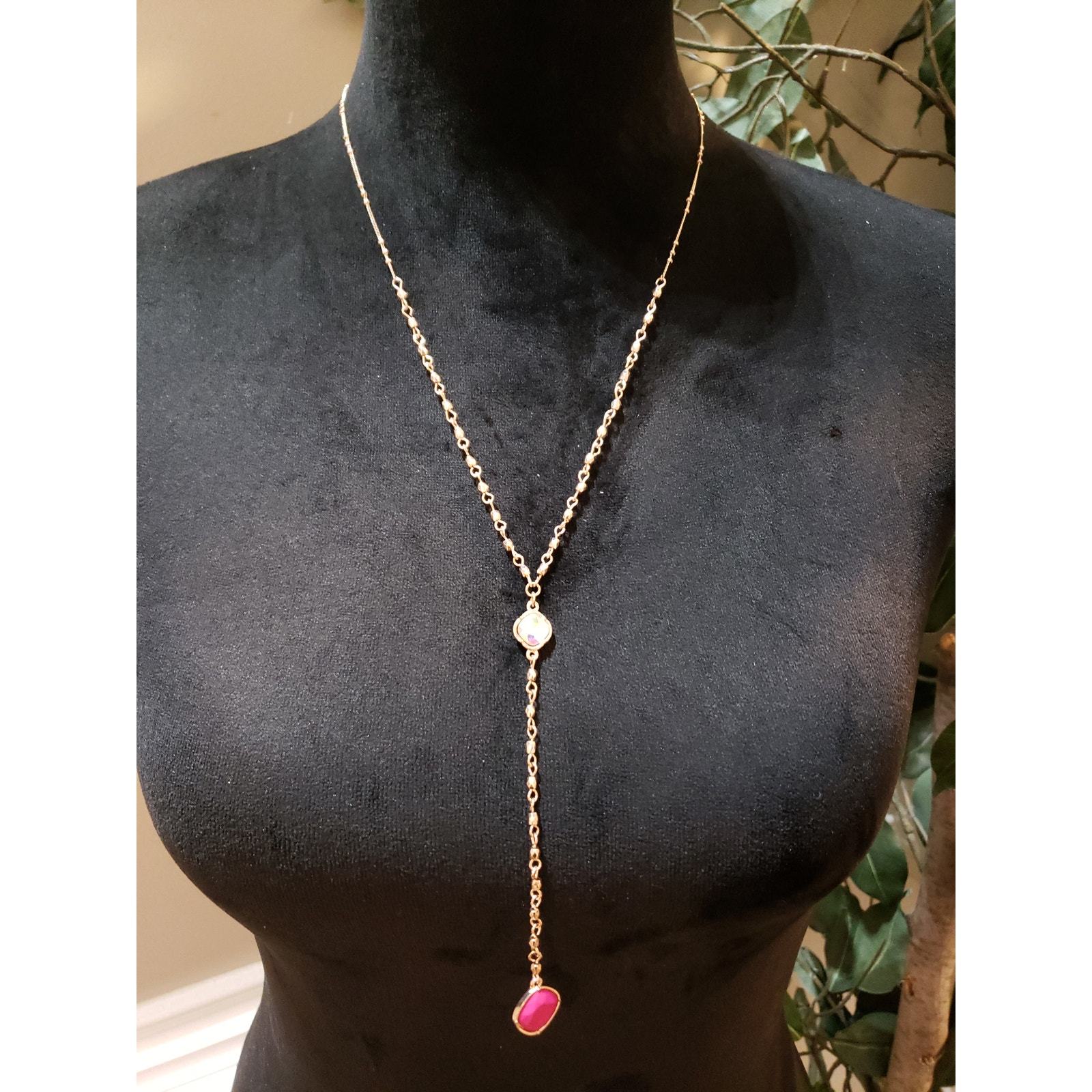 Womens Yellow Gold Ruby Infinity Station Lariat Y Drop Pink Stone Necklace.