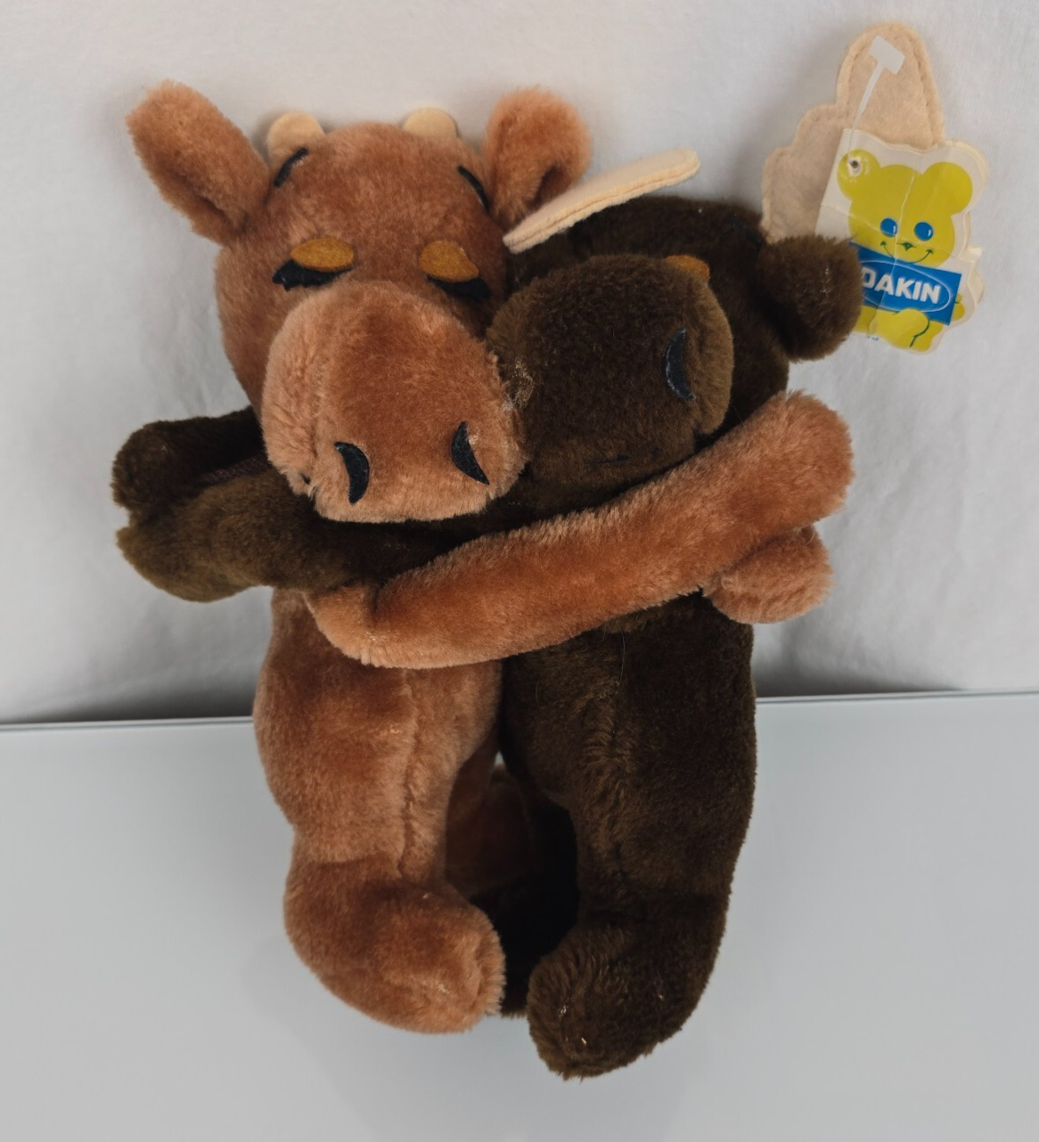 Vintage Dakin 1979 Nature Babies Mushy Moose Plush Chocolate Brown Hugging Hug