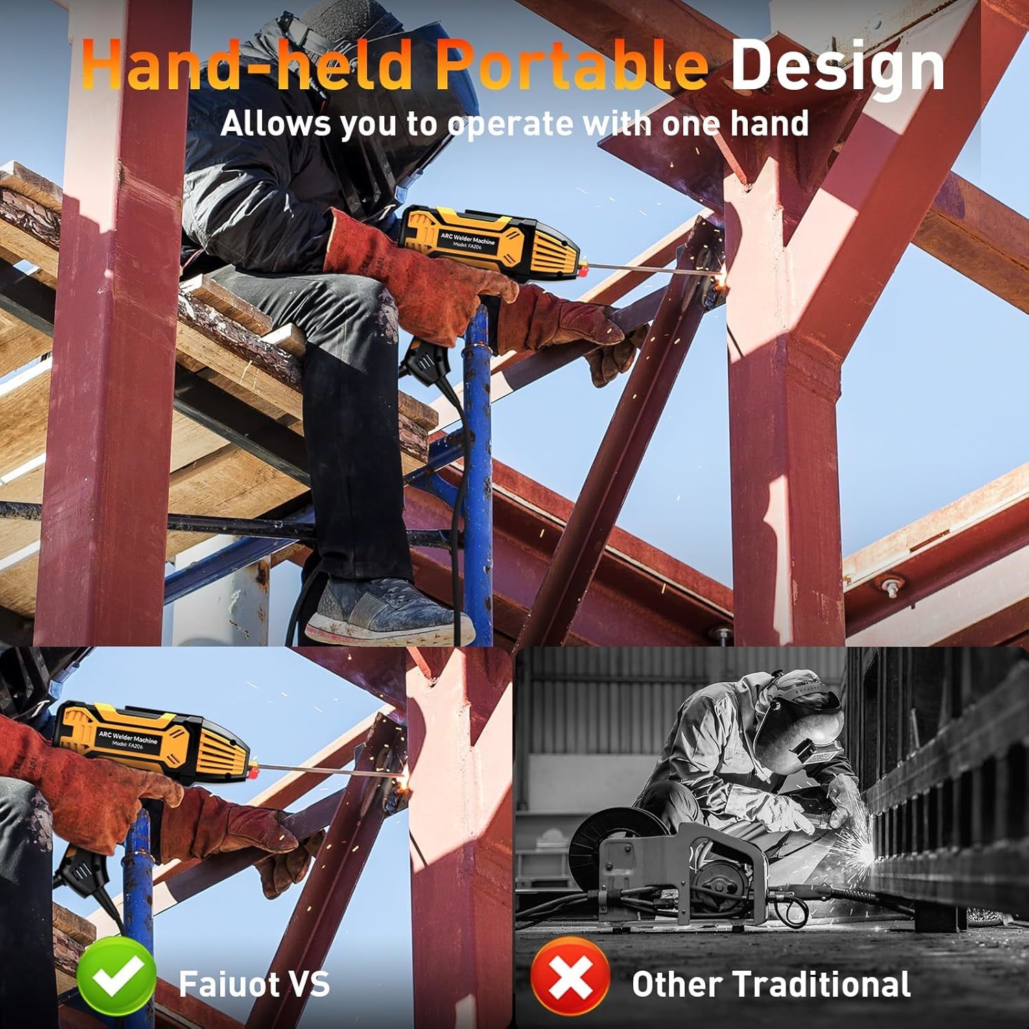 Portable Handheld Welding Machine, 110V Stick Welder with IGBT Yellow