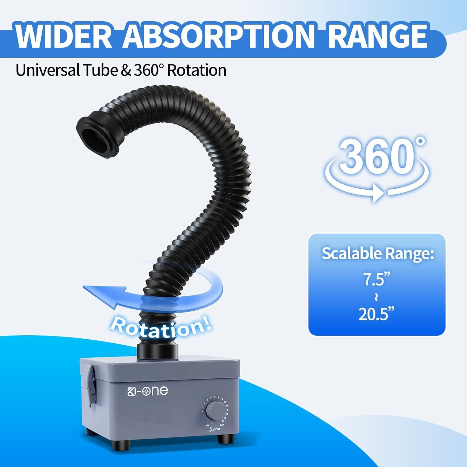 ?A strong heart and Robust Shell?A solid and reliable metal shell combined with our high-powered low-noise motor fan, operating at an impressive 15,000 RPM, allows this solder fume extractor to occupy minimal space while providing powerful and stable performance, achieving an airflow capacity of 160m/h and noise levels below 60 dbm. Instantly and quietly absorb harmful gases within a 5-inch range, ensuring a quiet environment and improving air quality ?H13 Efficient Filtration System?Experience the power of our triple efficient filtration system, equipped with a High-Density Fiber, Carbon-based Cotton Filter, H13 Efficient HEPA Filter, and Activated Carbon Filter. This combination effectively eliminates 99.99% of large dust particles, tiny impurities, mold spores, and bacteria, chlorine, HMs: lead, mercury, and arsenic, and harmful gases. Ensuring peace of mind and continuous, exceptional service without worrying about the filter's lifespan. We are committed to delivering the best service to you ?Professional Reliability?The professional strong suction solder fume extractor is designed to provide timely purification of harmful gases such as smoke, oil fumes, and dust particles generated during soldering, laser engraving, and other processes. With its stable and reliable performance, it ensures a safe and pollution-free working environment for you ?Convenient and Space-saving Design?With its compact and exquisite metal body, along with a 5-foot Power Adapter, our fume extractor offers convenience and saves space. The Smoke extraction hose, which can be adjusted to a 360 angle and extend from 7 inches to 25 inches, allows you to position the fume extractor anywhere within your workspace, ensuring an organized and professional workbench