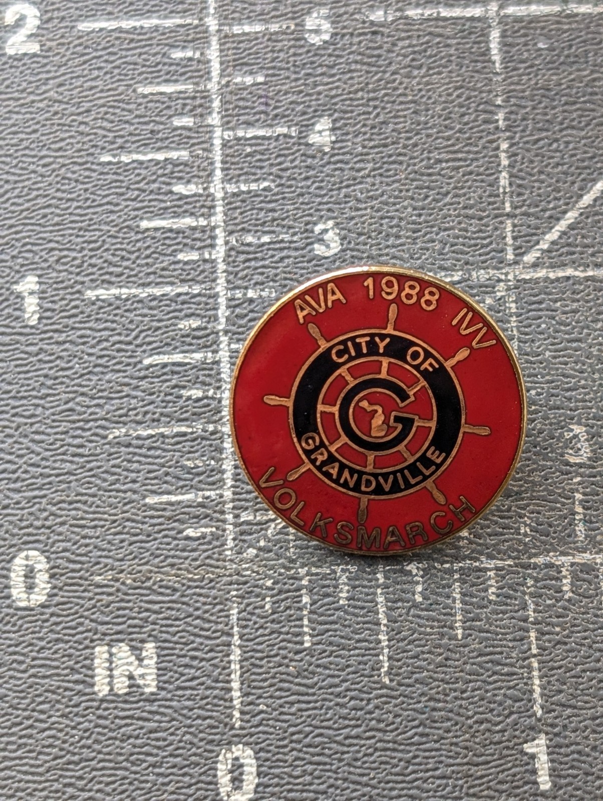 1988 Grandville Michigan Pin AVA IVV Volksmarch Gold Tone Enamel Pin