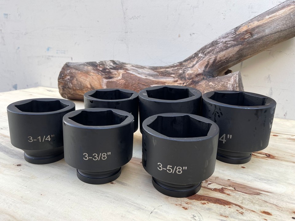 Package Content Six large SAE Socket Set (3-1/4", 3-3/8", 3-1/2", 3-5/8", 3-7/8" and 4 inch)