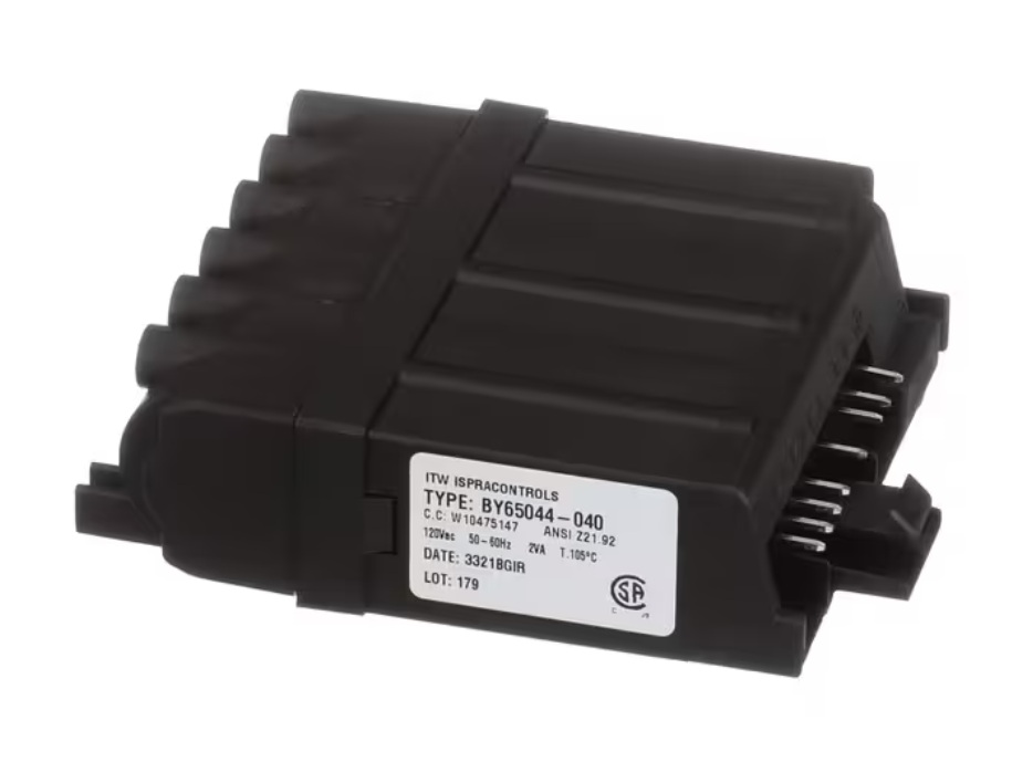 The Whirlpool BY65044-040 / W10475147 Ignition Module is a high-quality OEM electronic ignition component designed for gas ranges. Operating at 120 V, 50/60HZ, this module provides consistent and reliable ignition to burner valves, ensuring smooth and efficient gas flame startup across multiple surface burners. It is an essential replacement part for restoring full cooking performance and addressing issues like burners not lighting or delayed ignition. Trusted across a wide range of Whirlpool, Jenn-Air, KitchenAid, and Maytag ranges, this ignition module is engineered for durability and precise function.