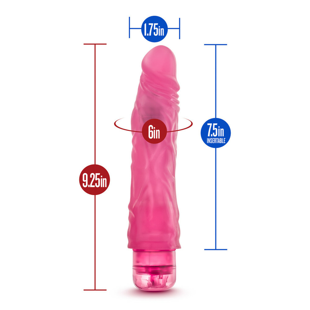 9 Inch Length (7.5 Inch Insertable) x 1.75 Inch Width Adjustable Multi-Speed Vibrations Splash Proof and Glows in the Dark Requires 2 AA Batteries (Not Included) Made of Non Porous PVC. Contains no Fragrances, Phthalates, Paraffins or Latex Full Case Quantity: 12