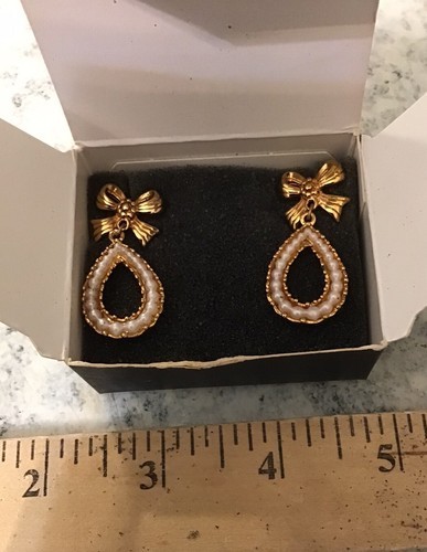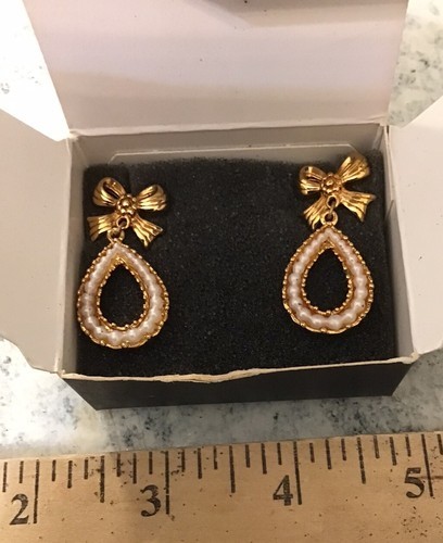 Vtg 1992 Avon Isn?t It Romantic Drop Earrings With Surgical Steel Posts Cream.