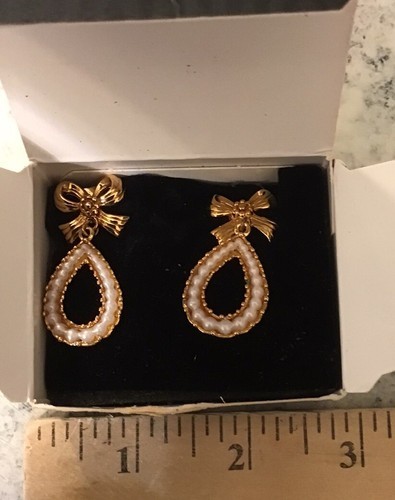 Vtg Avon Isn’t It Romantic Drop Earrings With Surgical Steel Posts Cream A1