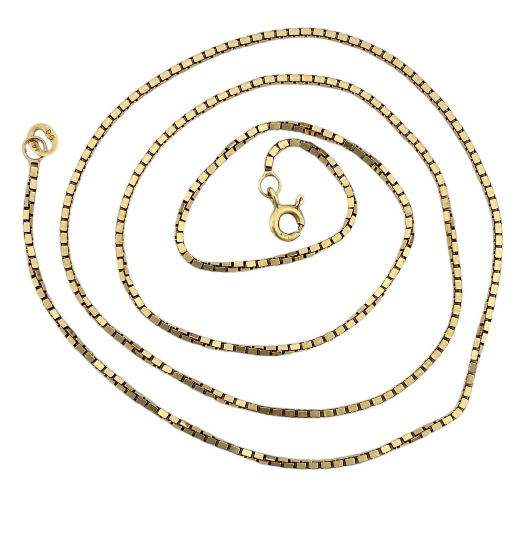 Type: ChainWeight: 3.7Karat: 14ktMetal: Yellow GoldGender: UnisexStyle: Box LinkSize / Length: 20"Owner applied: 14ktCondition:Used