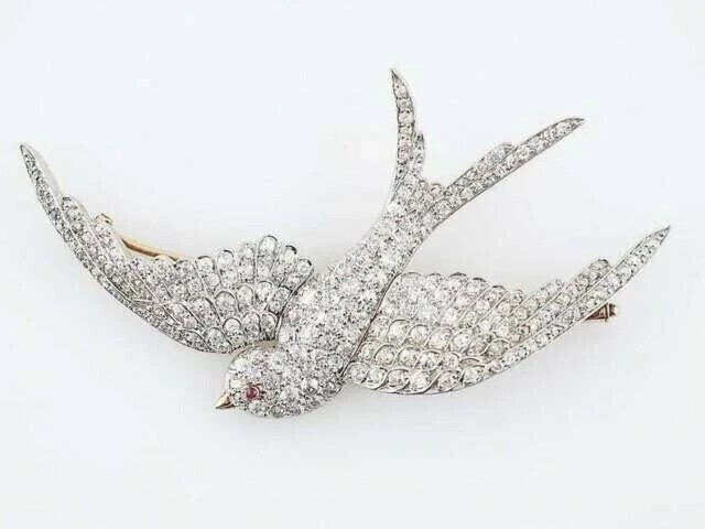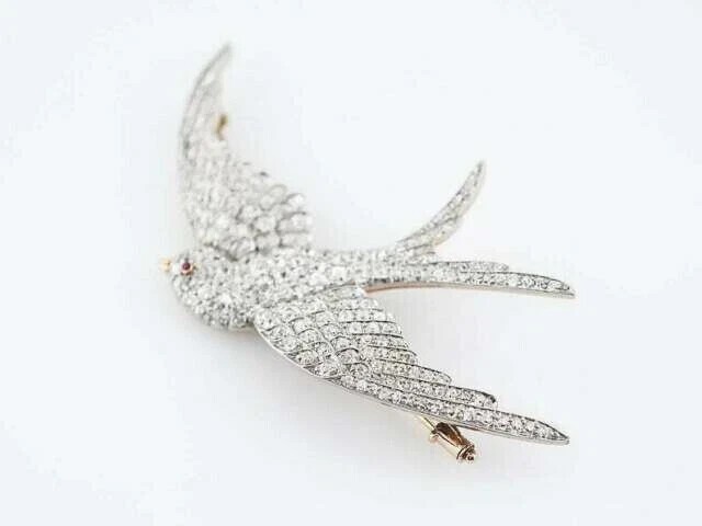 2CT Round Cut Lab Created Diamond Flying Bird Pin Brooch 14k TwoTone Gold Plated