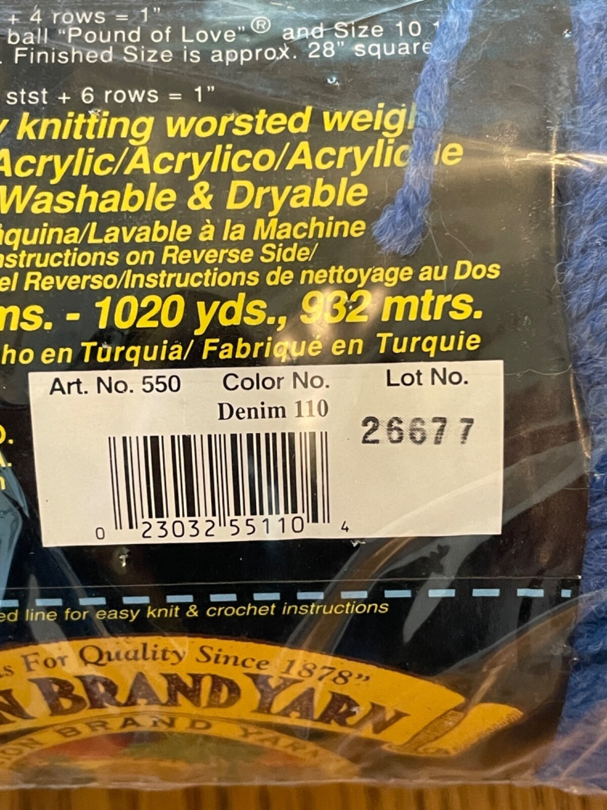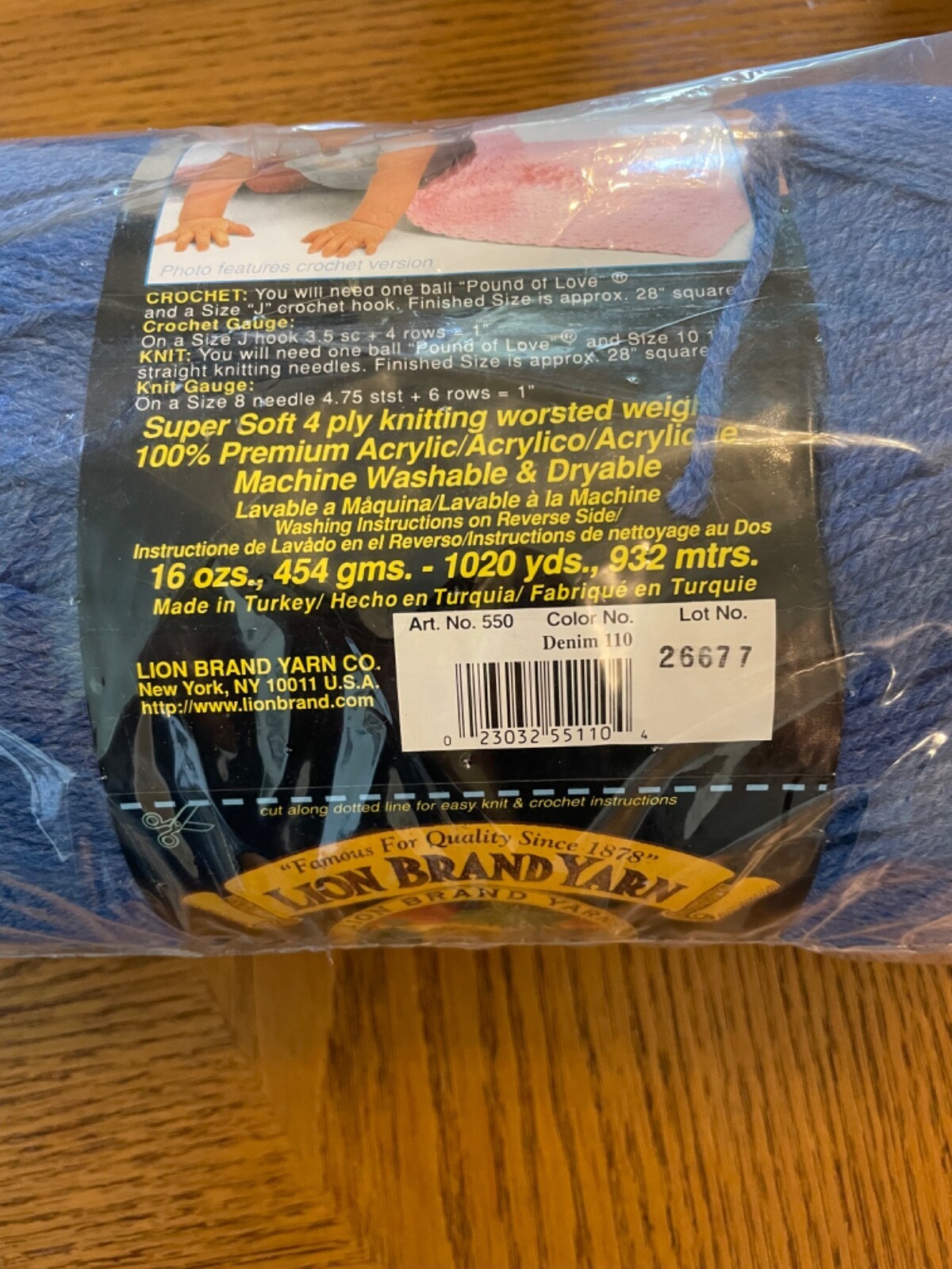 Lion Brand Pound of Love Worsted Weight Acrylic Yarn color 110 Denim 1020 yards